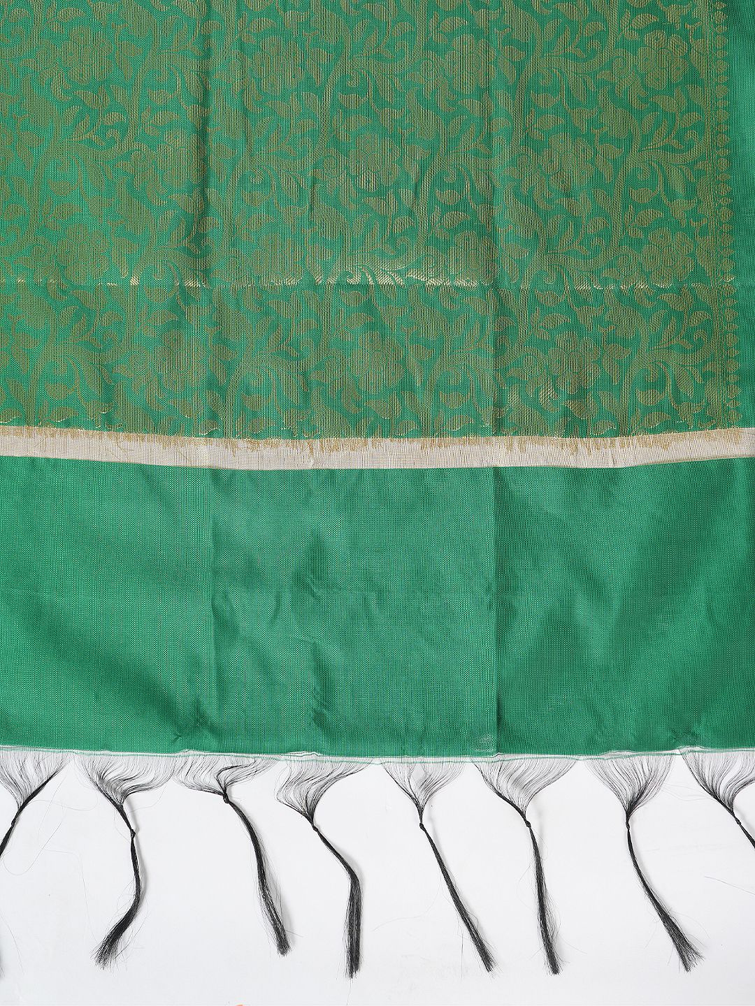 Green Banarasi Silk Dupatta with All-Over Woven Floral Motifs & Rich Zari Border (Size: 2.5x1 m Approx)