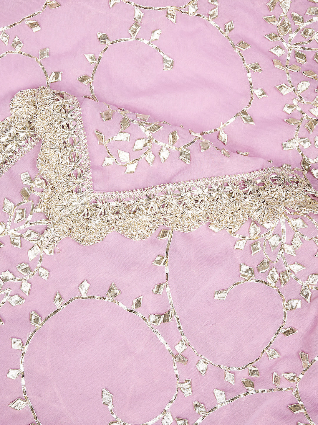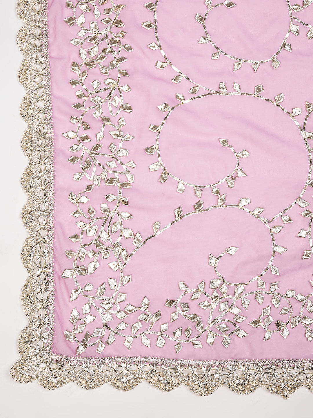 Pink Georgette Dupatta with Hand Gota Patti Work (Size: 2.5x1 m Approx)