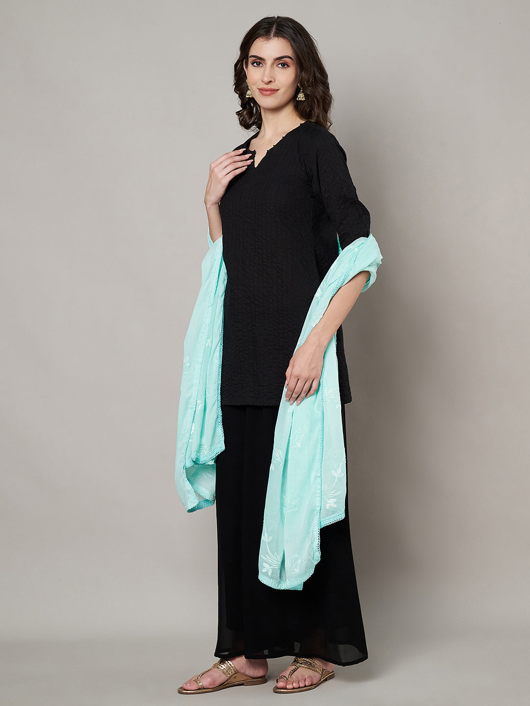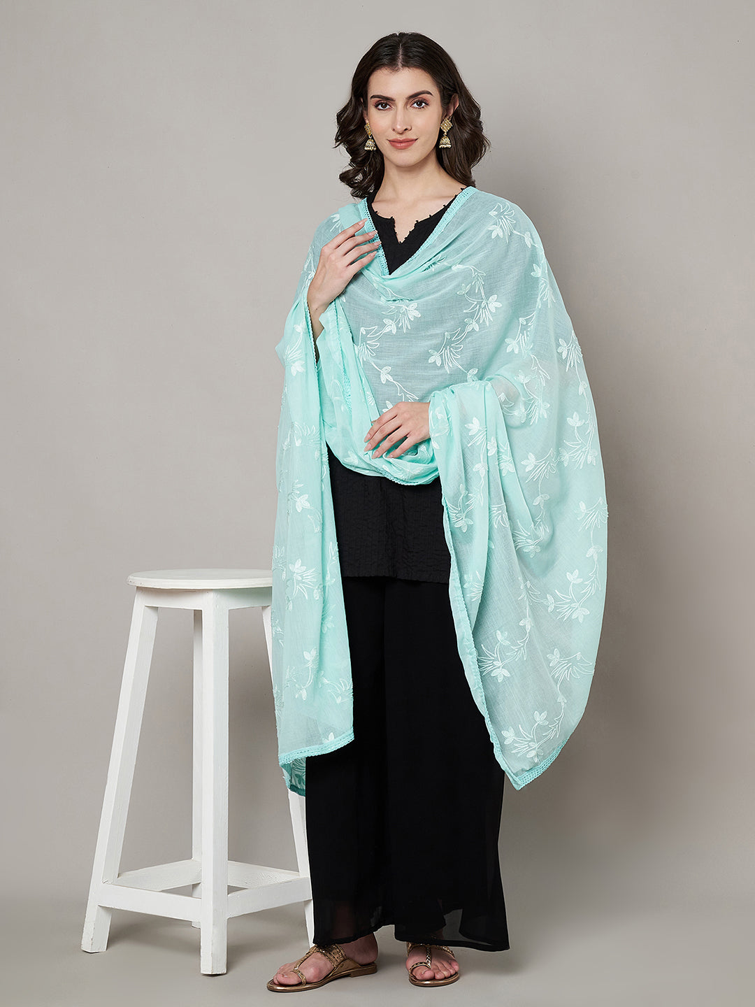 Finished with a neat lace border, the dupatta drapes effortlessly and enhances both solid and printed ethnic outfits. Its airy texture and refined embroidery make it suitable for festive gatherings, daytime functions, office wear, or casual ethnic styling. A versatile piece that adds subtle elegance without overpowering the look.