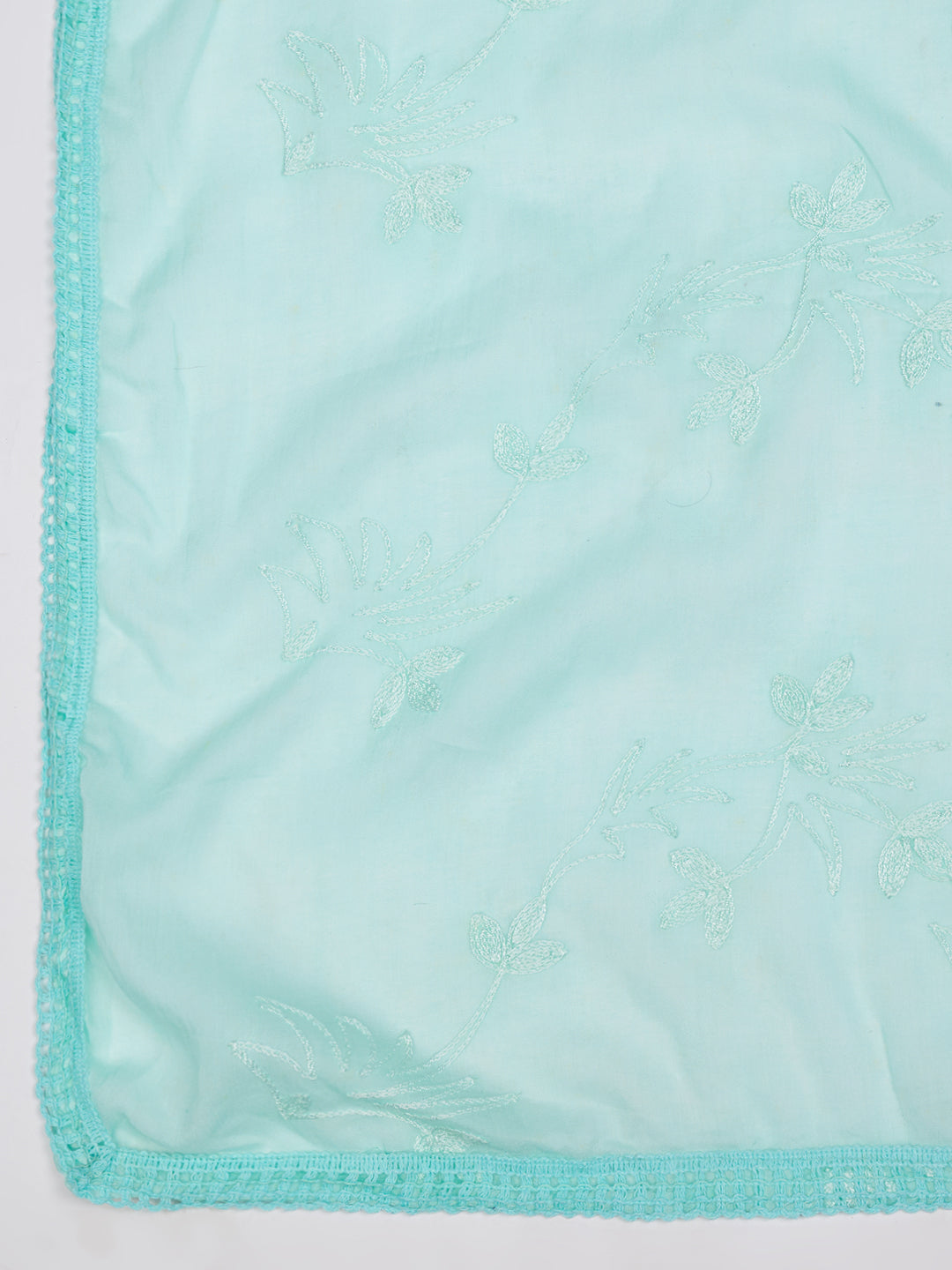 Soft Blue Dupatta with Cotton Thread Floral Embroidery & Lace Border (Size: 2.5x1 m Approx)