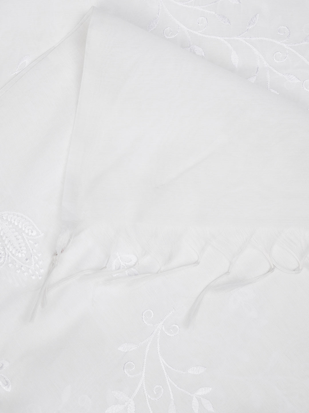White Chanderi Cotton Dupatta with Subtle Floral Embroidery (Size: 2.5x1 m Approx)