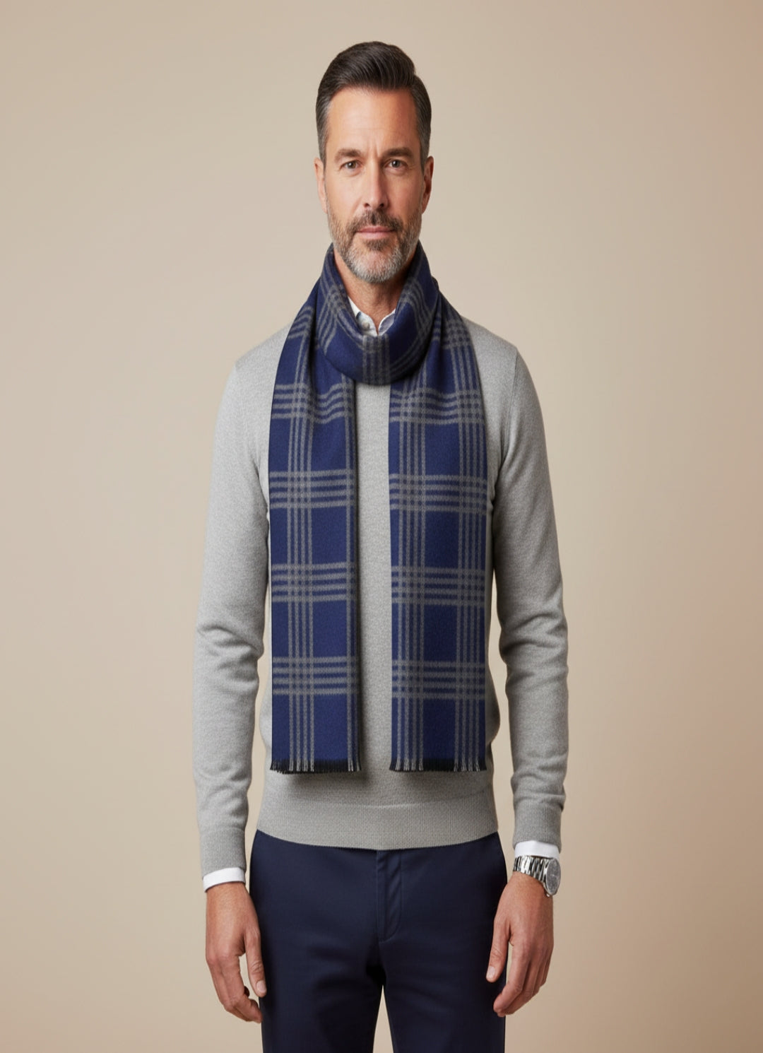 Designed for refined winter layering, this men’s reversible muffler is crafted from a premium woolen acrylic blend that offers warmth, softness, and long-lasting comfort. The clean, structured weave ensures a smooth texture with a neat fall, while the reversible design allows versatile styling with two distinct looks in one accessory. Lightweight yet insulating, it provides reliable protection against cold without feeling bulky, making it ideal for daily wear. Finished with clean edges for a polished appearance, this muffler pairs effortlessly with sweaters, jackets, coats, and formal winter outfits. Measuring 70 × 12 inches, it is perfectly proportioned for easy draping and comfortable wrapping—an elegant winter essential for men who value practicality, versatility, and timeless style.