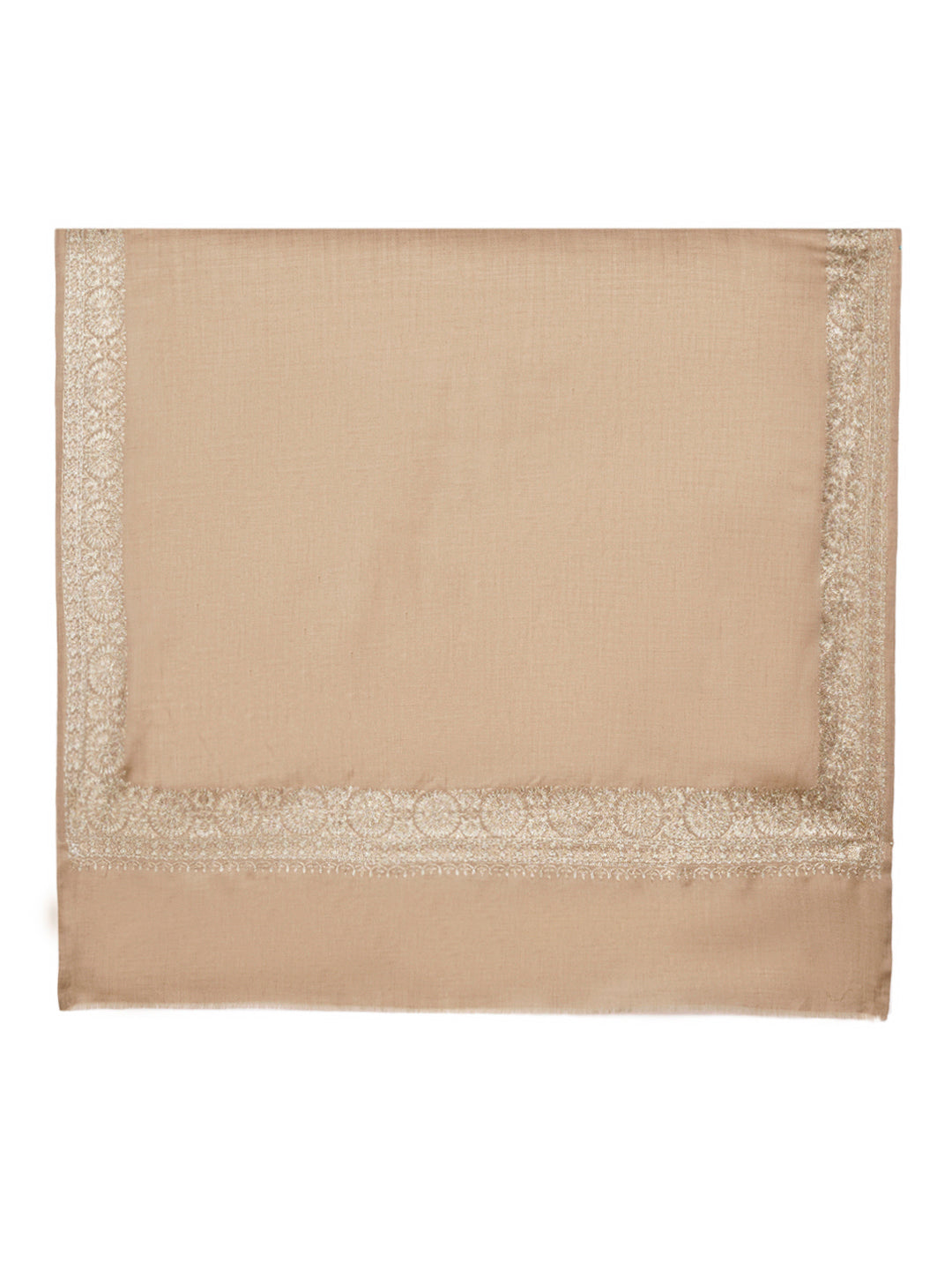 Beige Woolen Women Shawl with Gold Border – 80x40 Inches