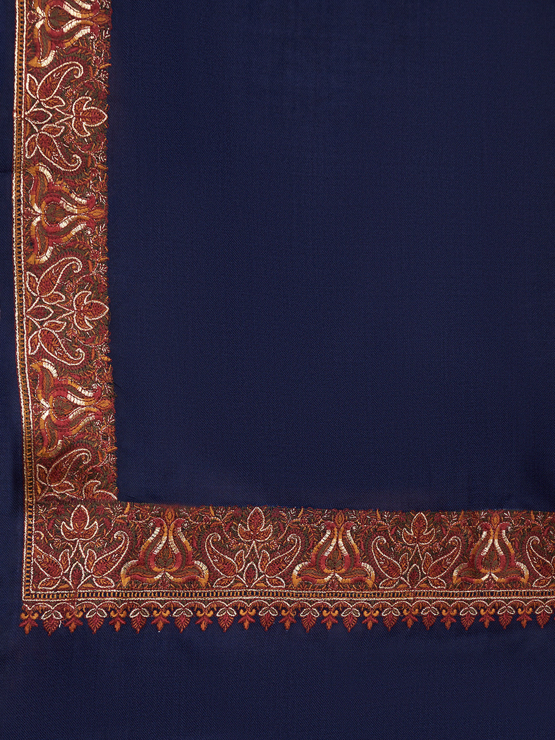 Accented with a finely detailed multicolour embroidered border inspired by classic Kashmiri and paisley motifs, the shawl adds subtle richness and heritage charm without overpowering the look. Crafted from soft woolen fabric, it provides cozy warmth while remaining lightweight and comfortable.