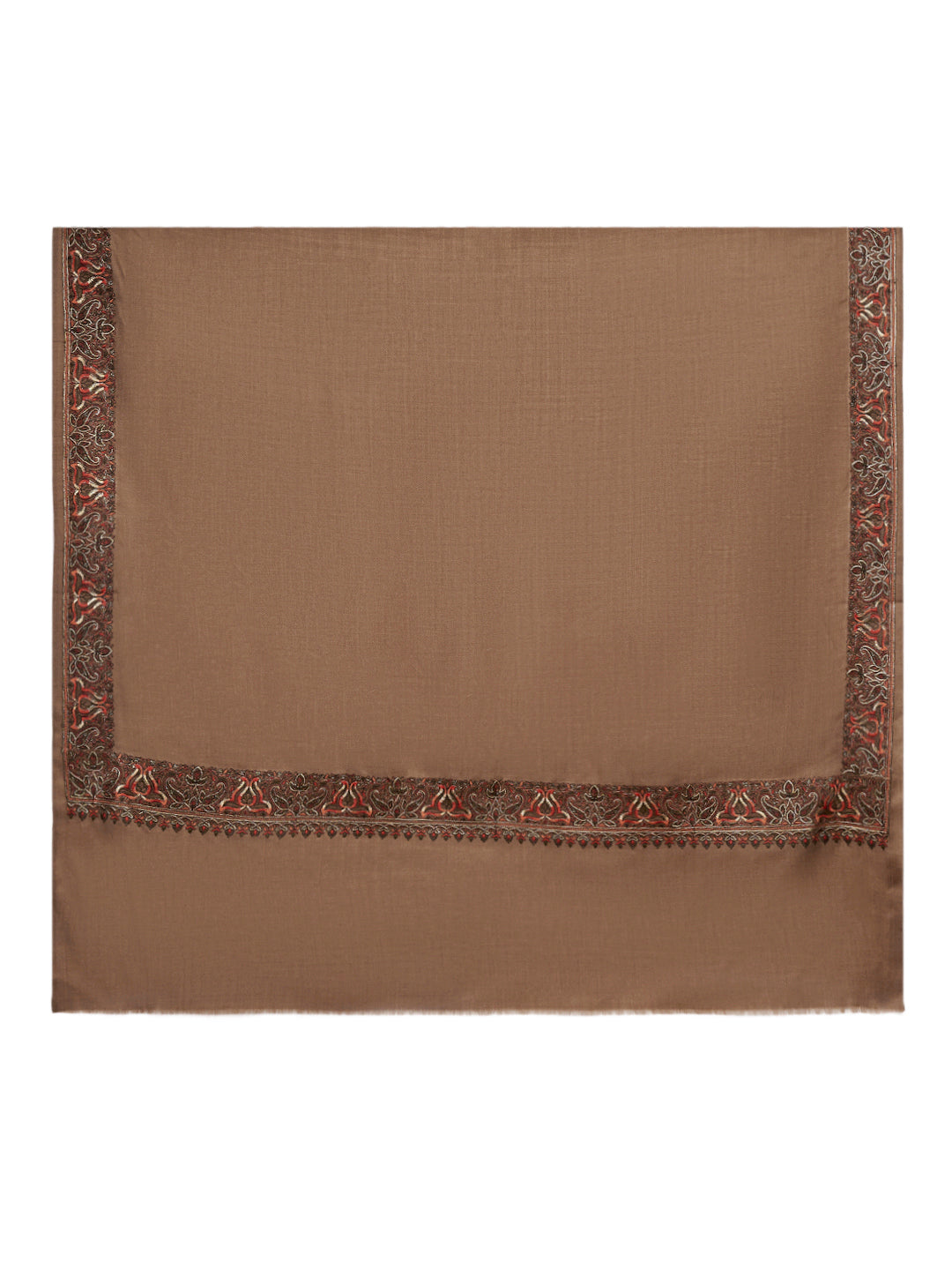 Brown Woolen Women Shawl with Traditional Multicolour Embroidered Border (80 x 40 Inches)