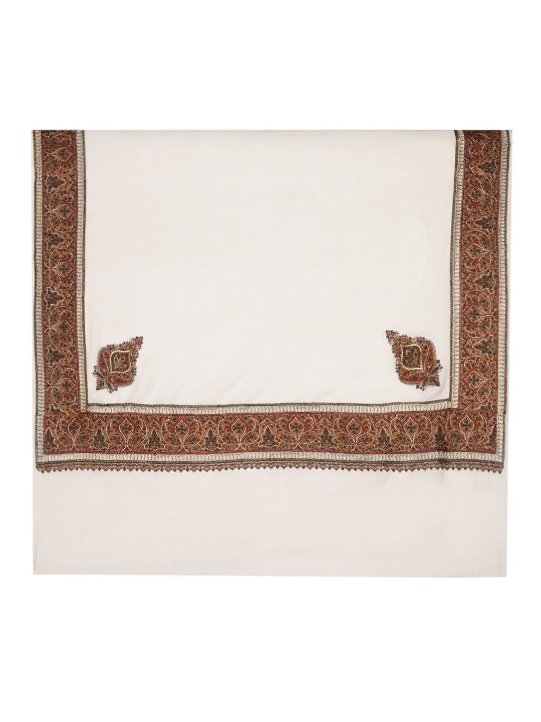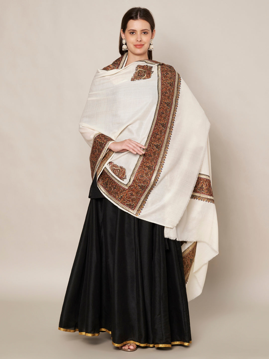Ivory Woolen Women Shawl with Intricate Embroidered Detailing – Winter Wrap (80 x 40 Inches)