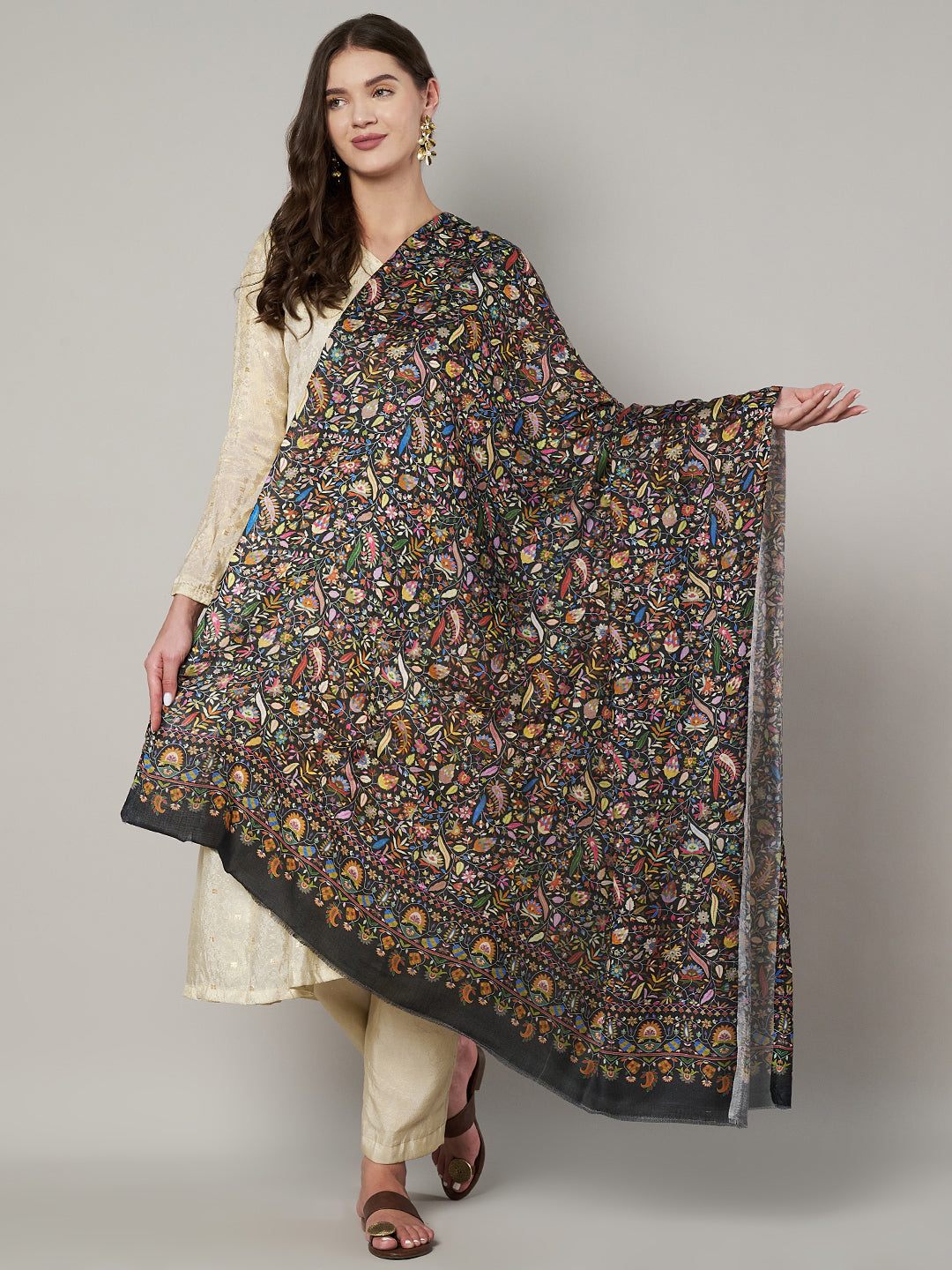 Lightweight and breathable, this shawl is comfortable for extended wear and suitable across seasons. The generous size allows versatile styling—draped gracefully over the shoulders, styled as a wrap with ethnic outfits, or paired with minimal western wear for a statement look.