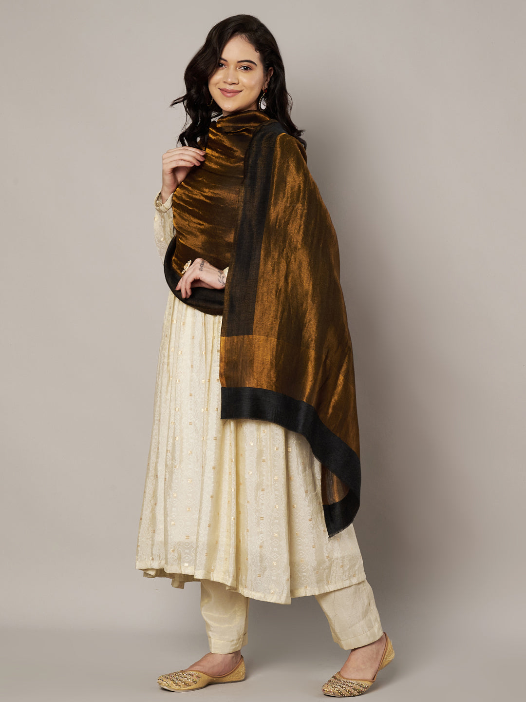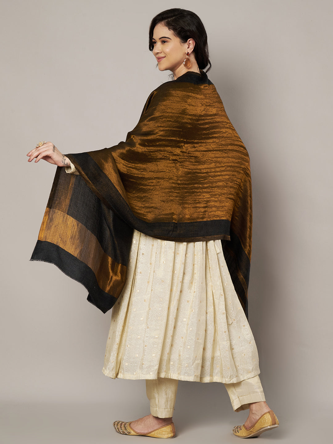 Refined and versatile, this women’s woolen stole is thoughtfully crafted to offer understated elegance with everyday comfort. Made from soft wool, it provides gentle warmth with a lightweight, fluid drape that feels effortless to wear. The design features a clean, minimal body enhanced by a subtle moonlight zari border, adding a soft sheen and refined detail without overpowering the look. Reversible in nature, the stole offers two styling options in one, making it a practical yet elegant winter accessory. Measuring 80 × 28 inches, it can be styled over kurtas, suits, dresses, and fusion ensembles with ease. Ideal for winters, office wear, travel, festive occasions, and evening outings, this stole is a sophisticated choice for women who appreciate minimalist design, fine craftsmanship, and timeless appeal.