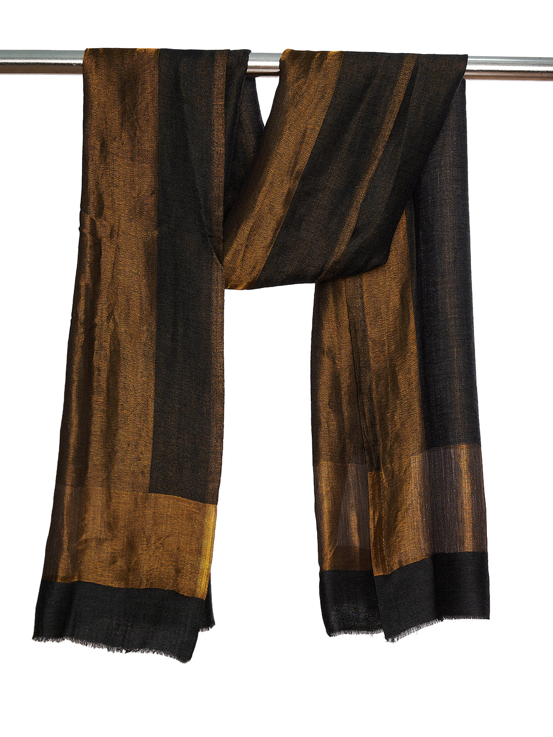Reversible Wool Black Women Stole with Moonlight Zari Border | Elegant Winter Wrap | 80 × 28 Inches
