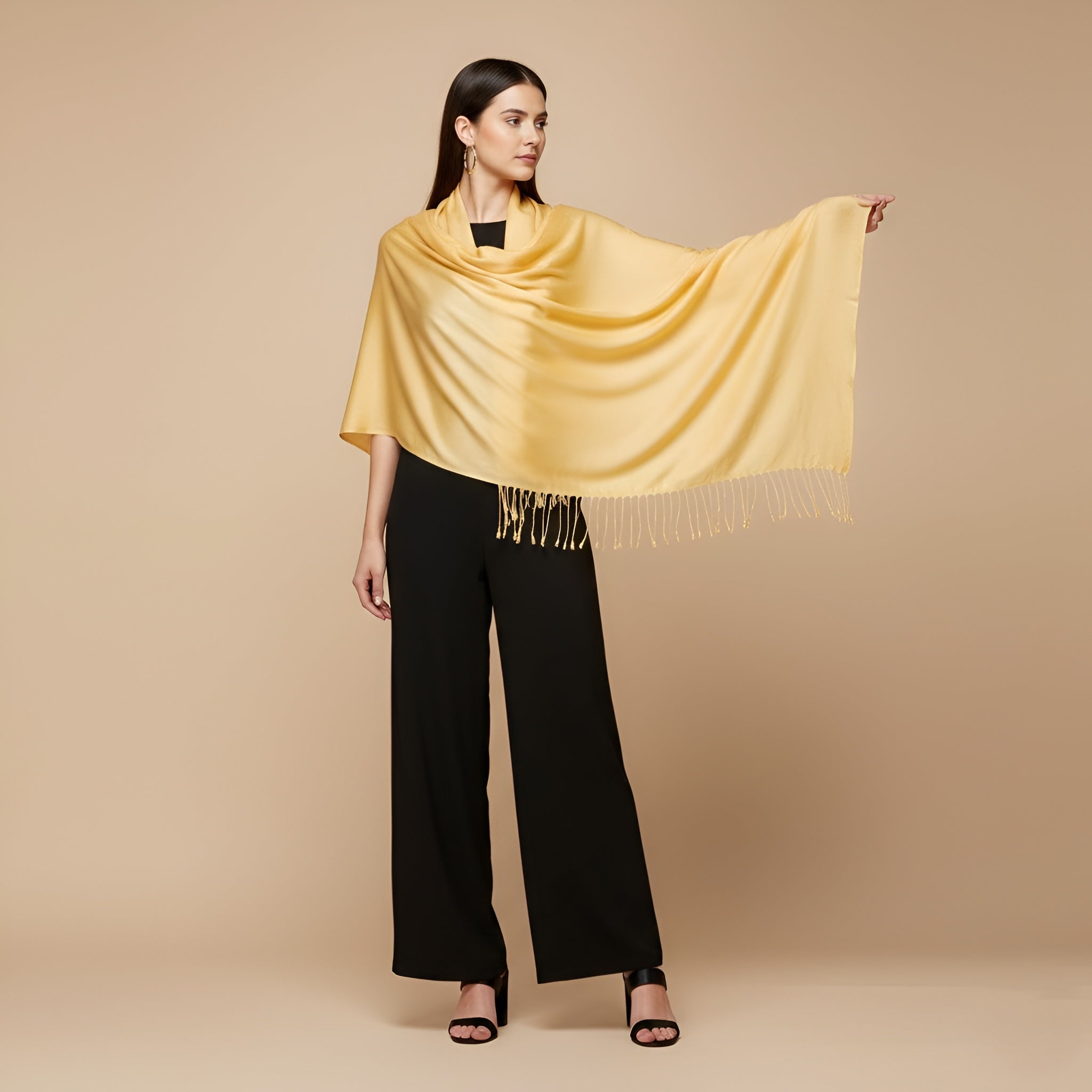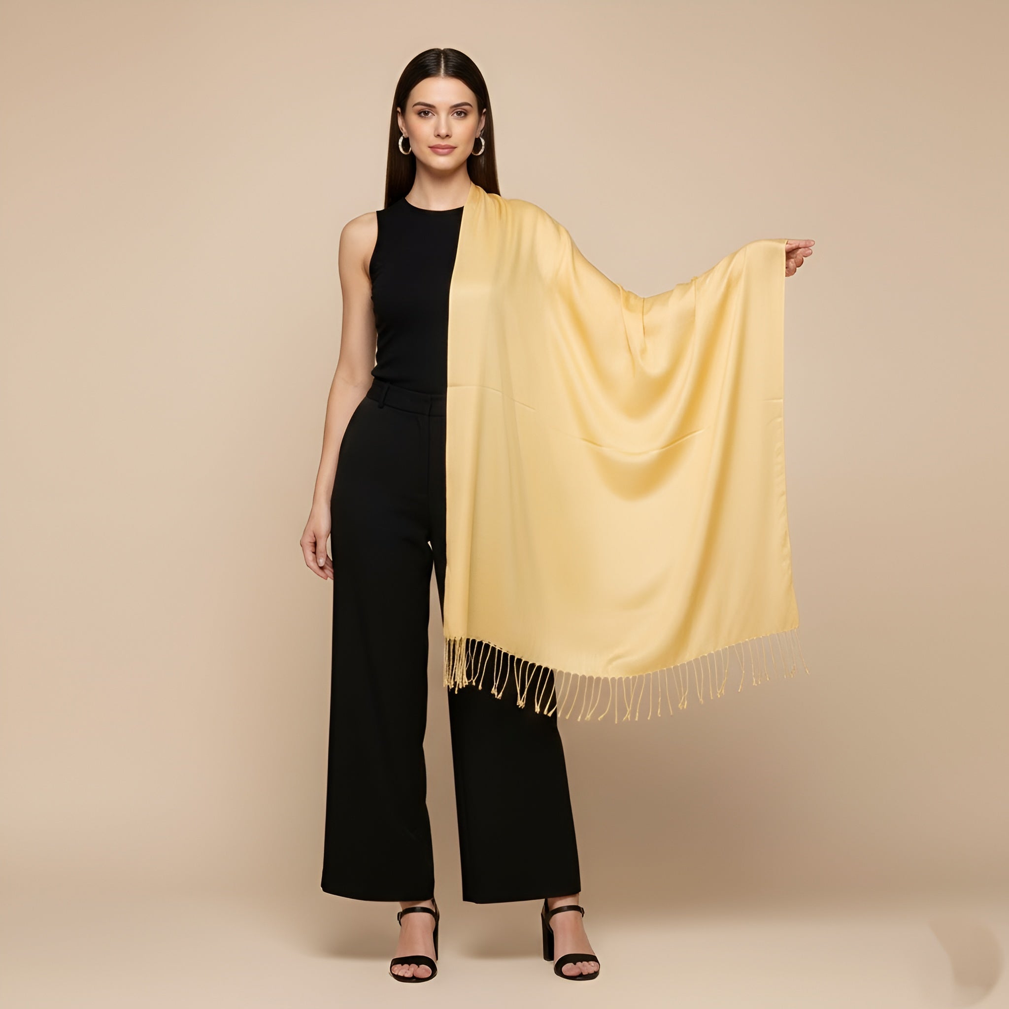 Solid Viscose Golden Women Stole with Soft Drape & Fringed Finish | Lightweight Everyday Wrap (80 × 28 Inches)