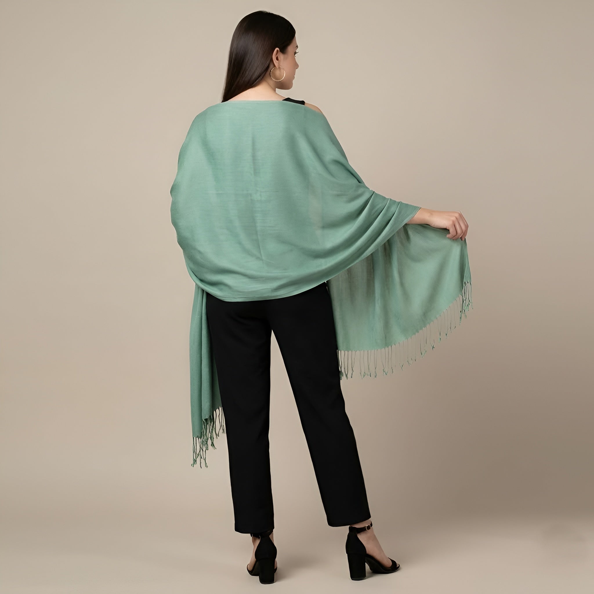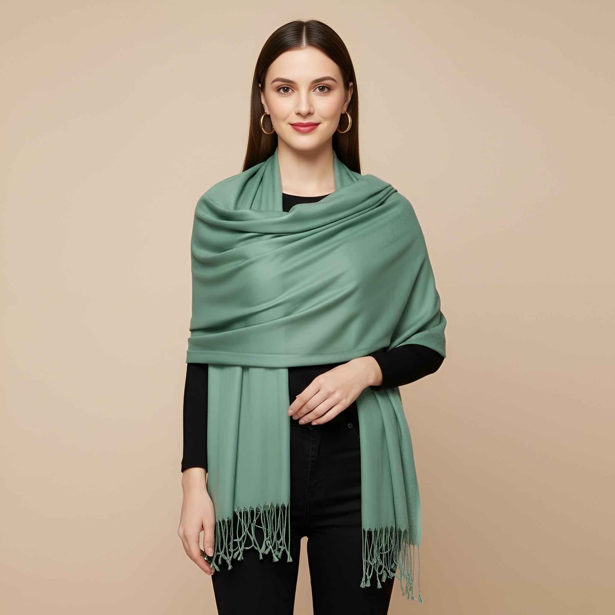 Solid Viscose Light Green Women Stole with Soft Drape & Fringed Finish | Lightweight Everyday Wrap (80 × 28 Inches)