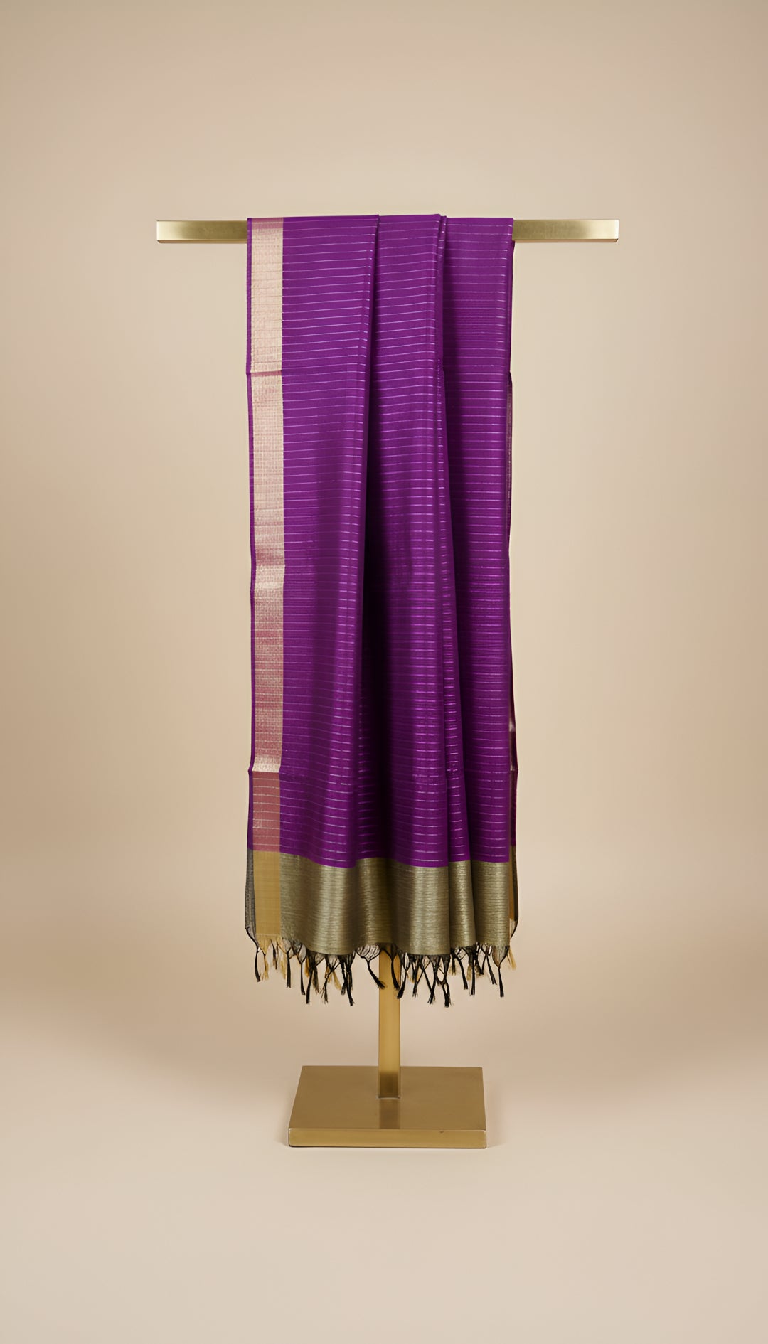 Purple Striped Silk Dupatta with Zari Border | Elegant Ethnic Drape (2.5 Metres Approx.)