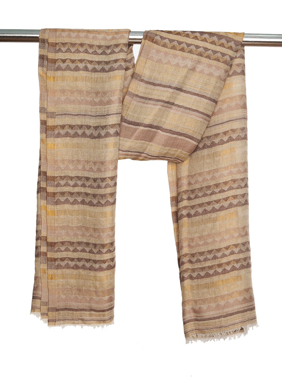 Elevate your winter styling with this elegant women’s woolen stole, thoughtfully crafted to deliver cozy warmth with a refined ethnic appeal. Made from soft wool fabric, it offers a comfortable feel and a graceful, fluid drape, while the all-over zig zag woven pattern enhanced with subtle moonlight zari detailing adds a gentle sheen and understated sophistication. Neatly finished edges lend a polished look, making it suitable for both everyday wear and special occasions. Measuring 80 × 28 inches, this versatile stole can be styled effortlessly over kurtas, suits, sarees, and winter ensembles, making it ideal for winters, festive gatherings, office wear, evening outings, and travel—perfect for women who appreciate traditional craftsmanship blended with modern elegance.