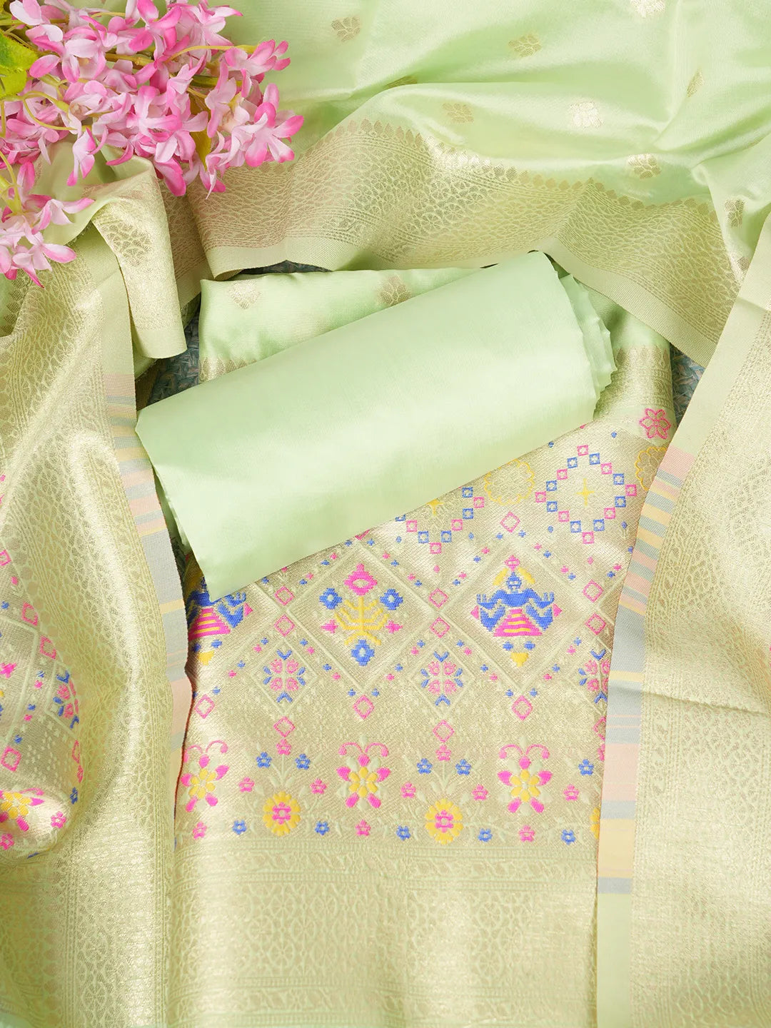 Women’s Banarasi Silk Unstitched Suit Set | Luxurious Ethnic Ensemble