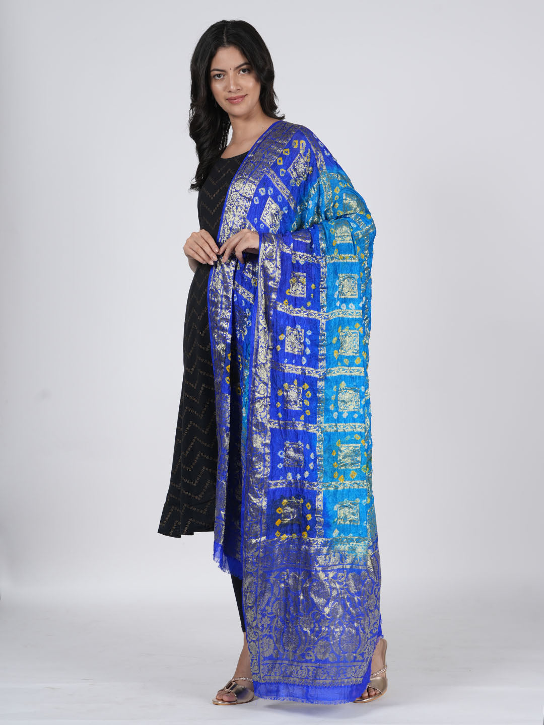 Bandhani Banarasi Gharchola Silk Dupatta in Sky Blue & Royal Blue (Size: 2.5x1 m Approx)