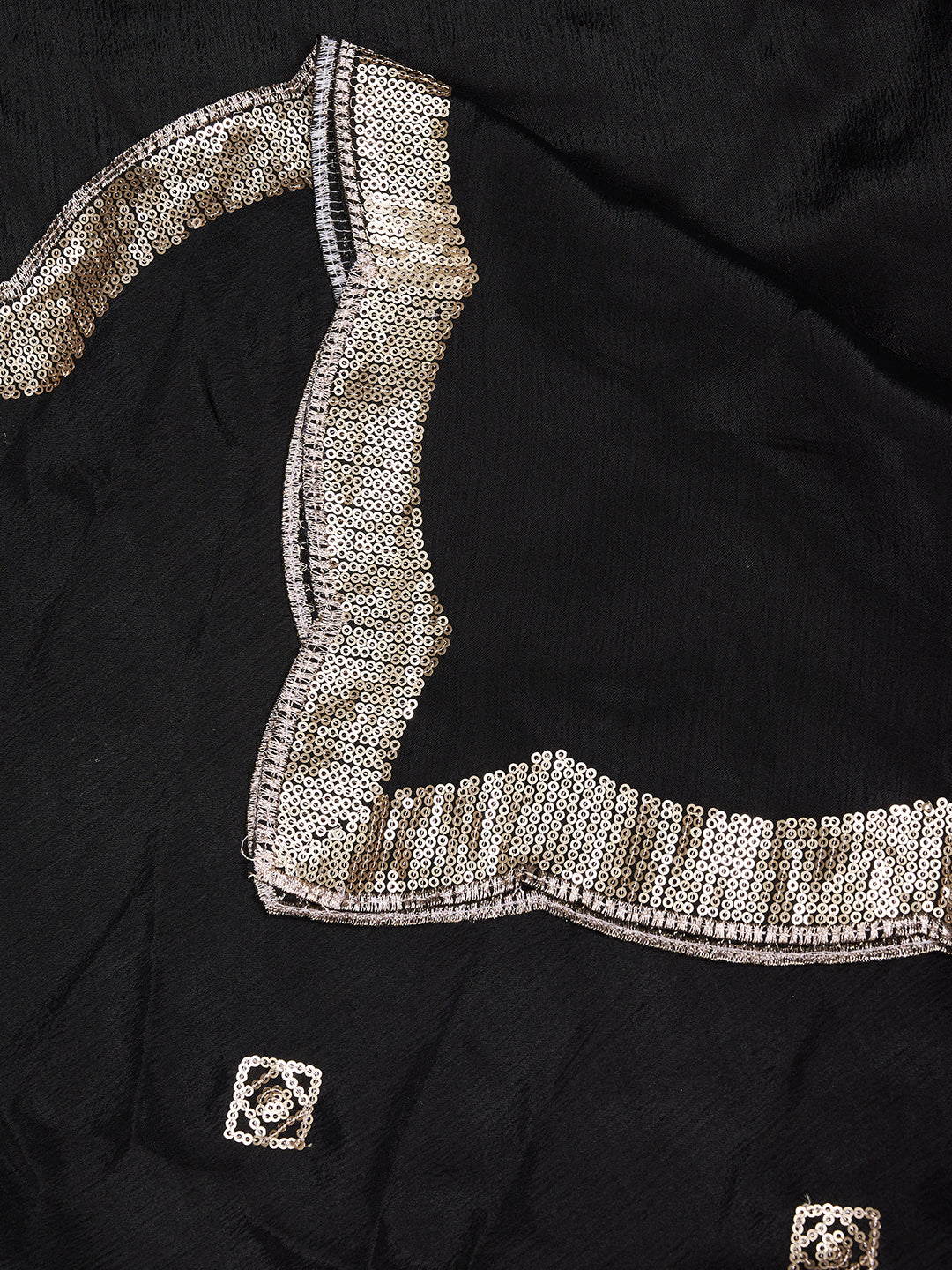 Elevate your ethnic look with this graceful black dupatta crafted in lightweight chiffon fabric. The dupatta features delicate gold motif embellishments scattered evenly across the body, adding a subtle festive shimmer without overpowering the look.