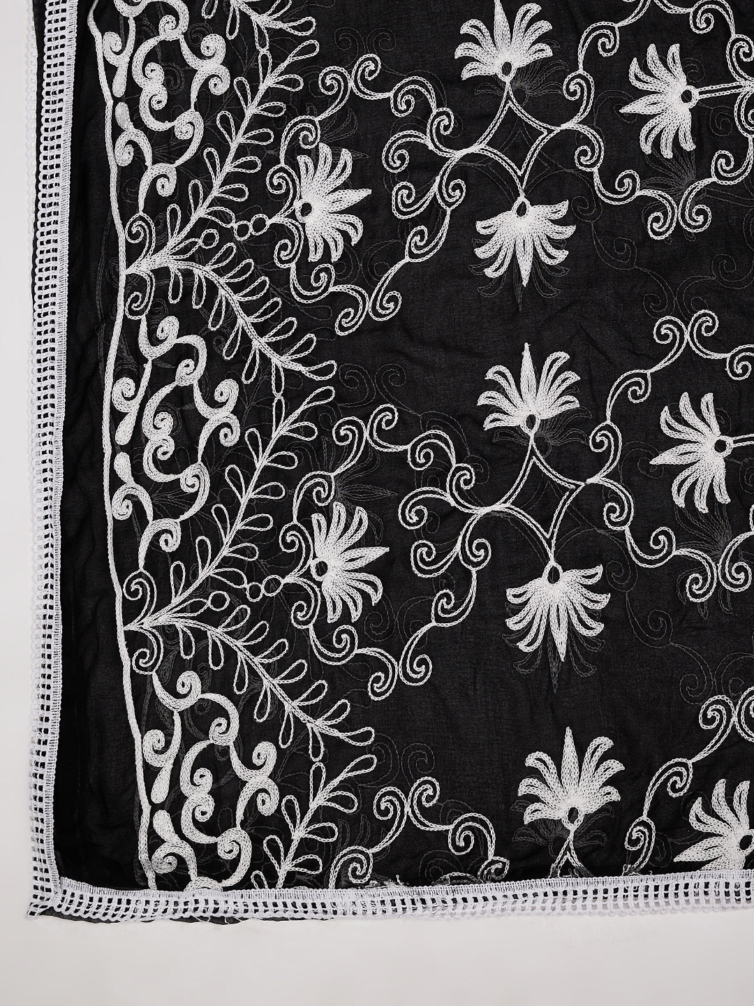 Black Karachi Chiffon Dupatta with Elegant Thread Embroidery (Size: 2.5x1 m Approx)
