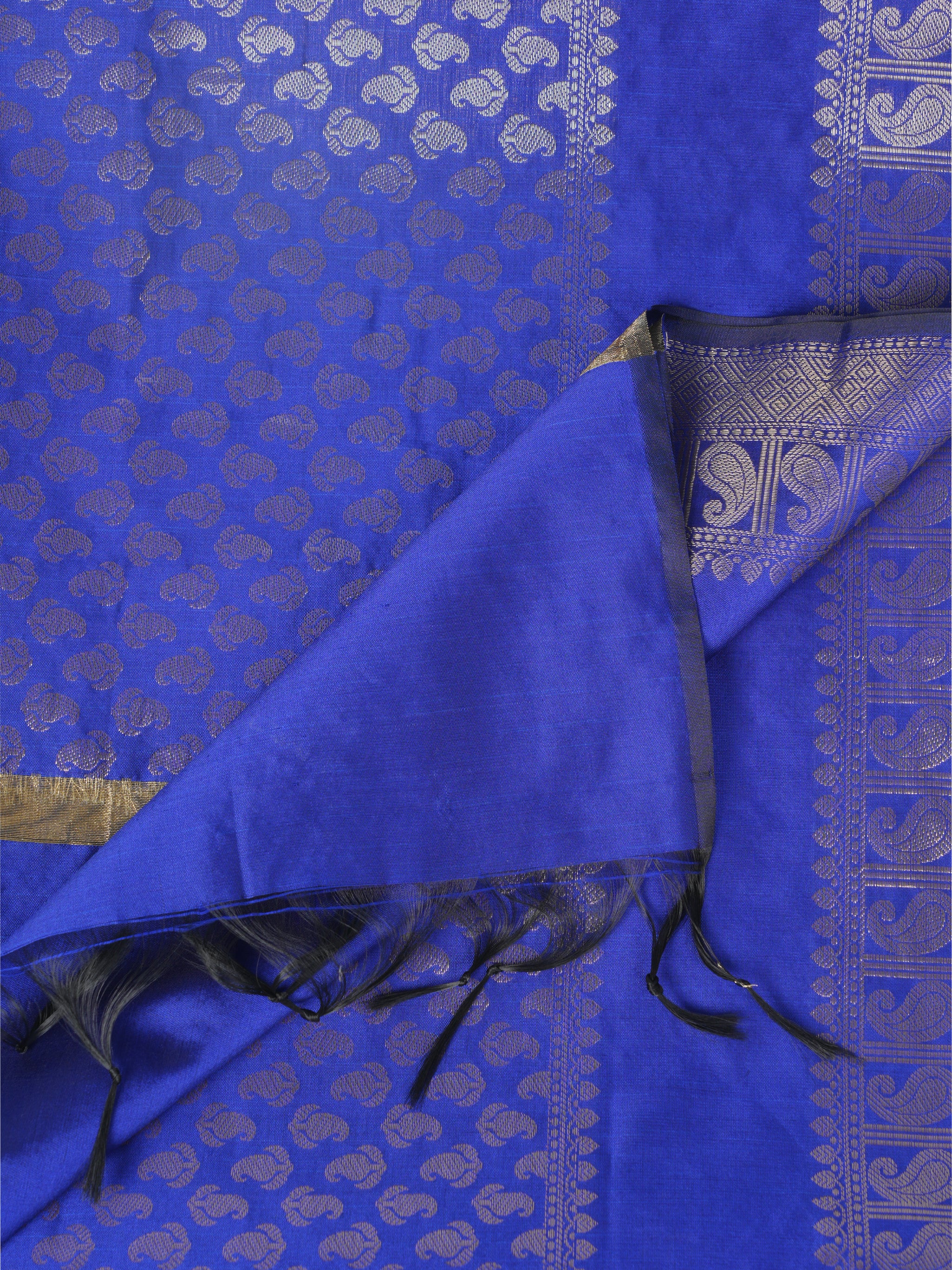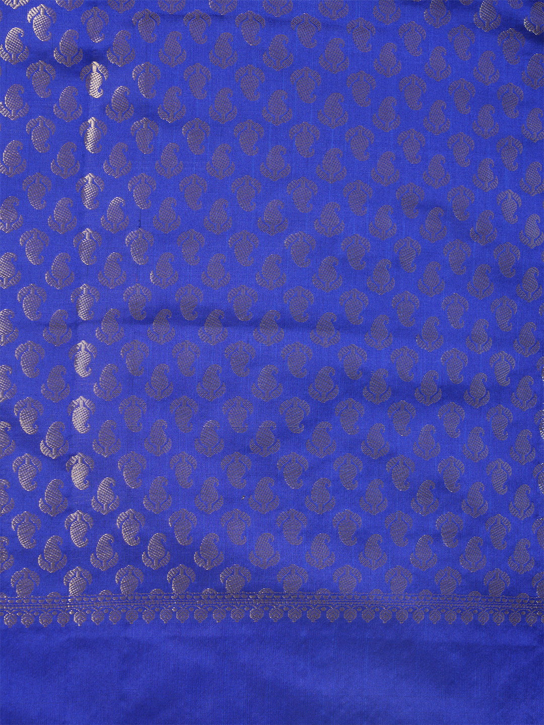 Blue Banarasi Silk Dupatta with Gold Zari Buti & Ornate Border (Size: 2.5x1 m Approx)