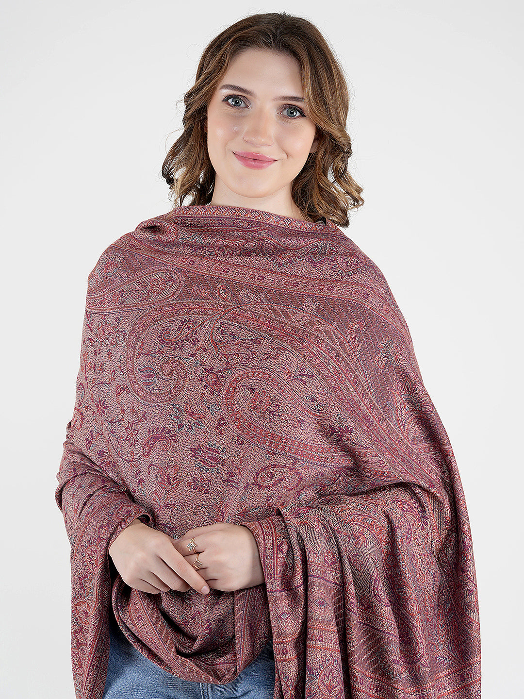 Wrap yourself in timeless elegance with this classic Jamawar shawl, beautifully crafted from a premium wool blend for warmth, softness, and durability. The shawl features an all-over intricate paisley and traditional Jamawar-inspired weave, showcasing fine detailing that reflects heritage craftsmanship.