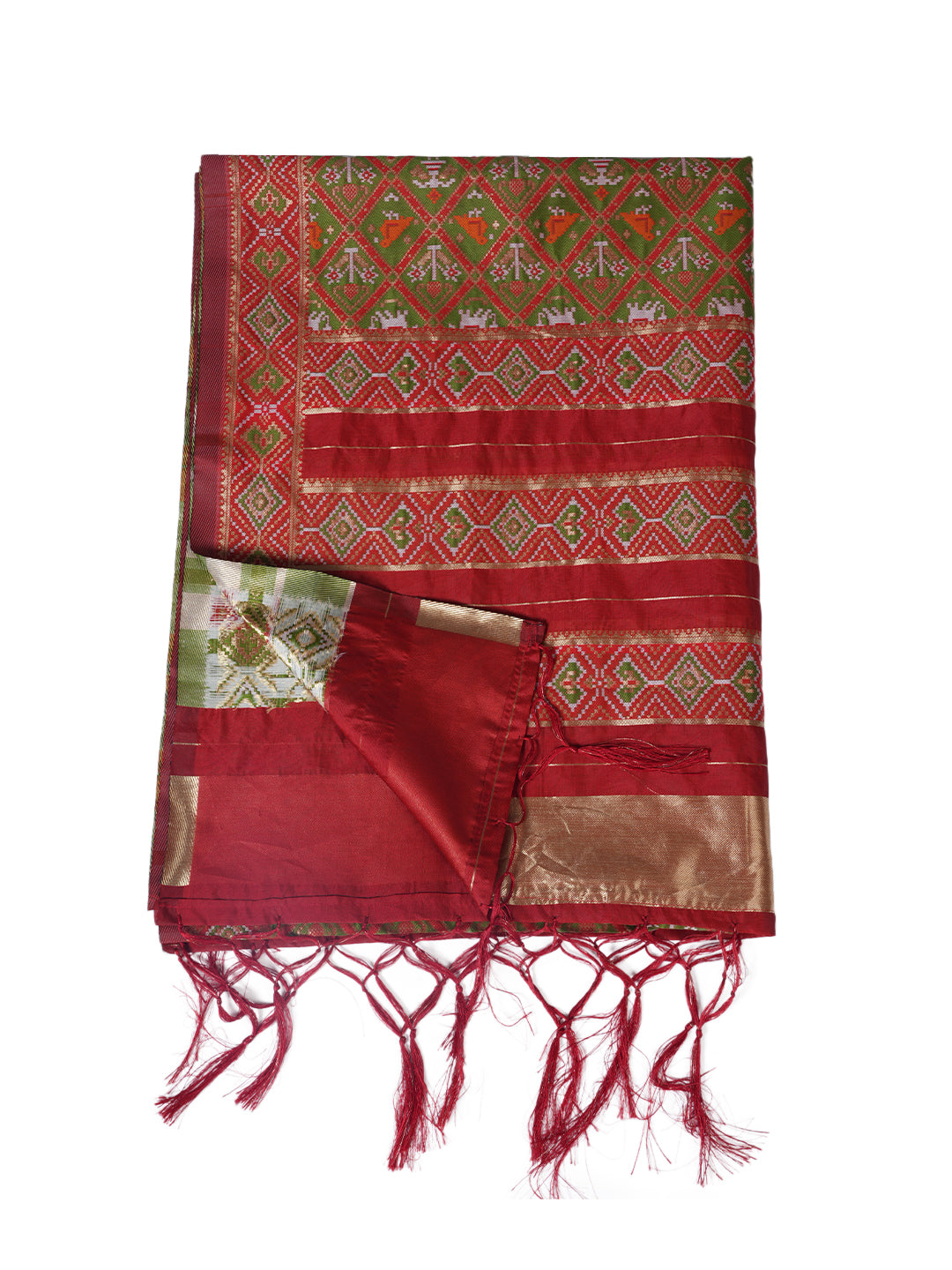 Brown Paithani Silk Dupatta with Geometric Motifs & Contrast Zari Border (Size: 2.5x1 m Approx)
