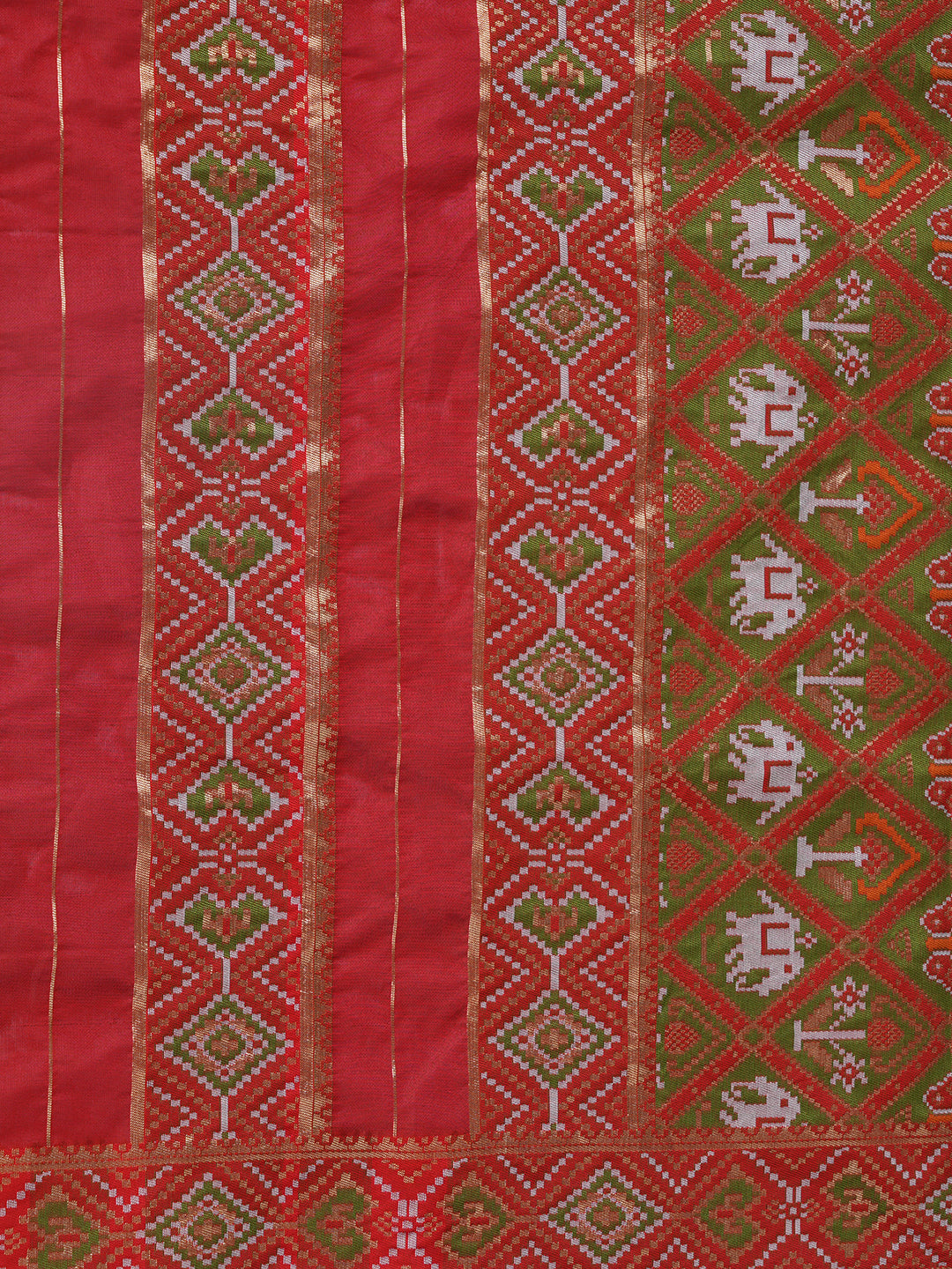 Crafted in rich silk, this striking Paithani dupatta features a vibrant brown base intricately woven with traditional geometric motifs highlighted in contrasting hues, reflecting classic Paithani artistry with a bold, contemporary appeal. Accentuated by a contrast red and gold zari border with a detailed pallu, the dupatta offers a perfect balance of heritage charm and festive elegance. The smooth, lustrous silk drapes beautifully, making it an ideal choice for weddings, festive occasions, and statement ethnic looks. Pair it with solid kurtas or traditional ensembles to let its vibrant craftsmanship stand out. Material: Silk | Size: Approx. 2.5 x 1 metres.