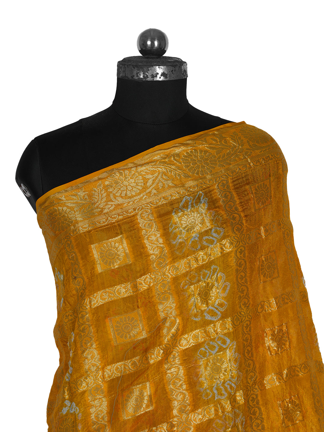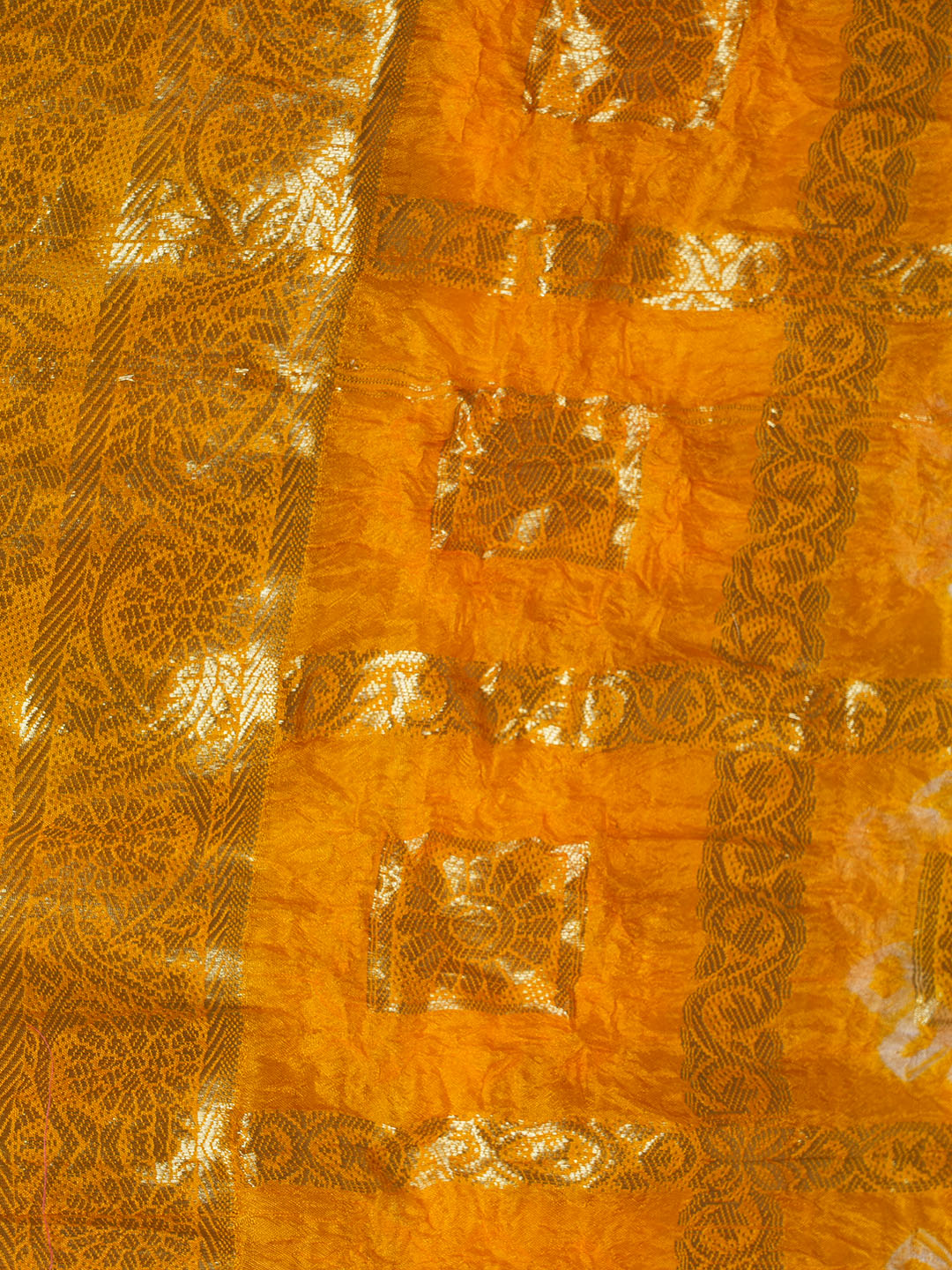 Gold Bandhani Banarasi Gharchola Silk Dupatta with Zari Border (Size: 2.5x1 m Approx)
