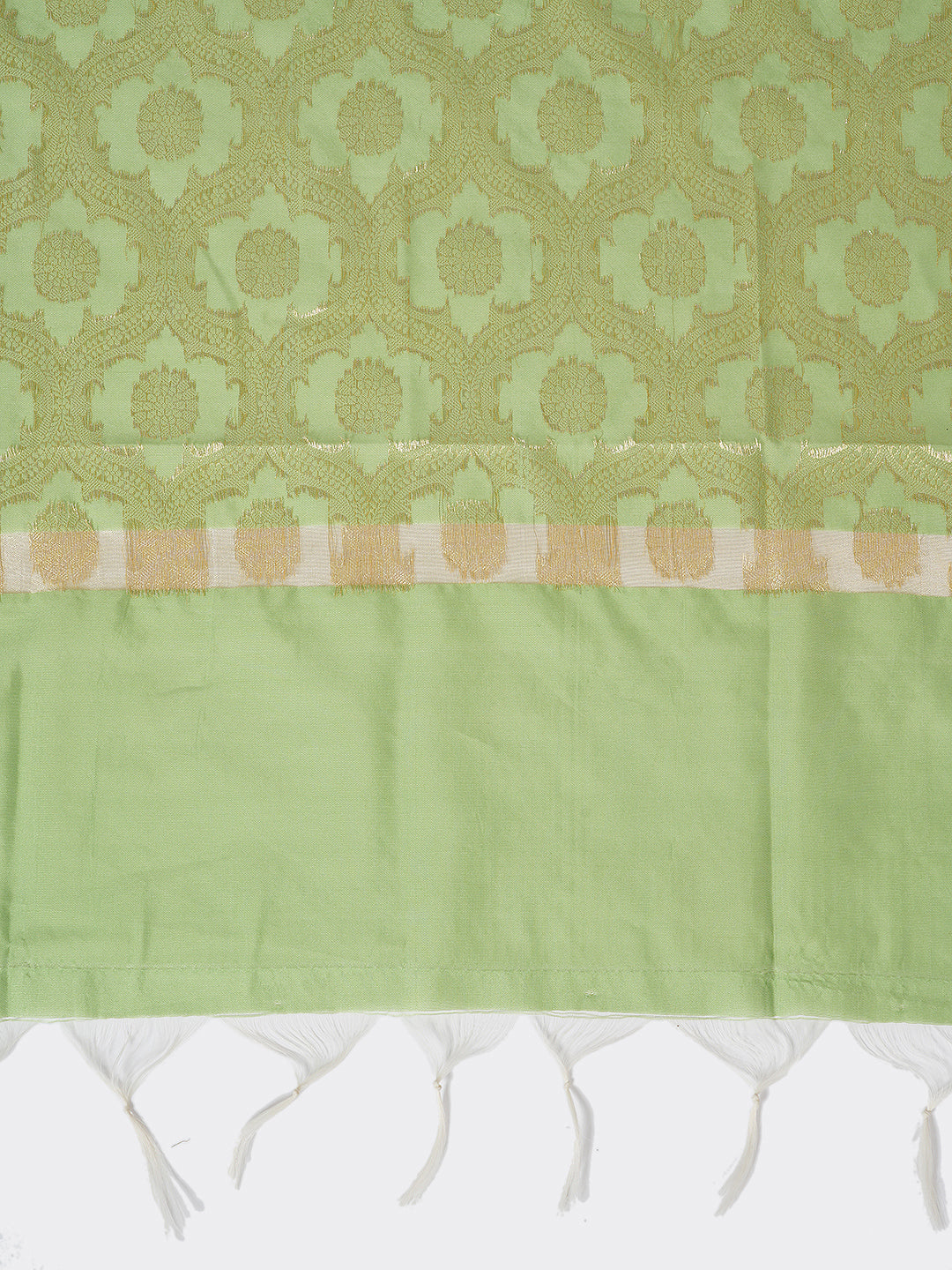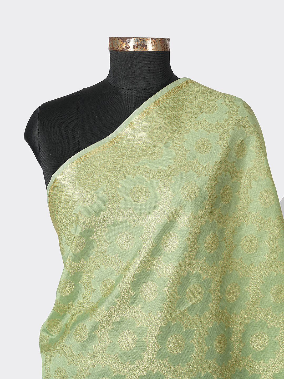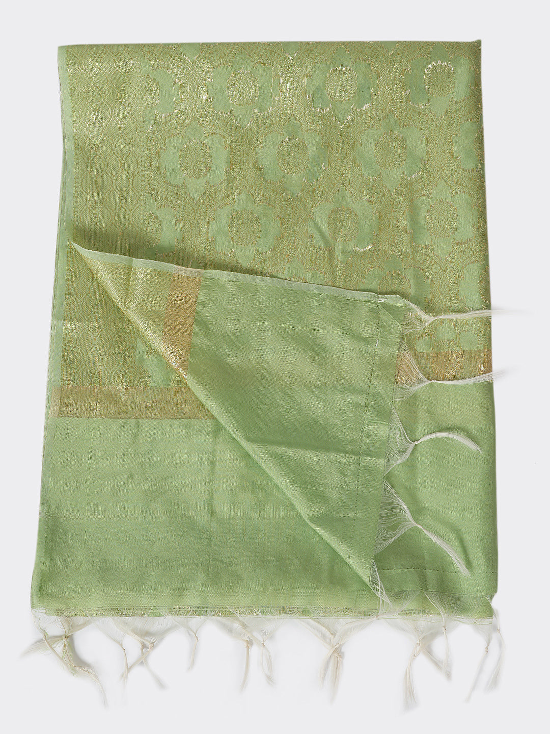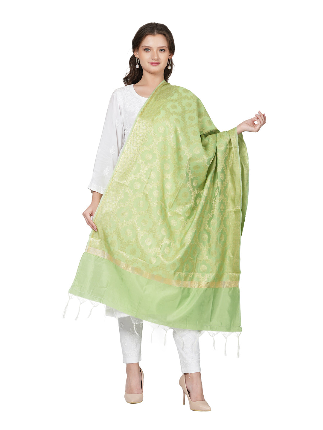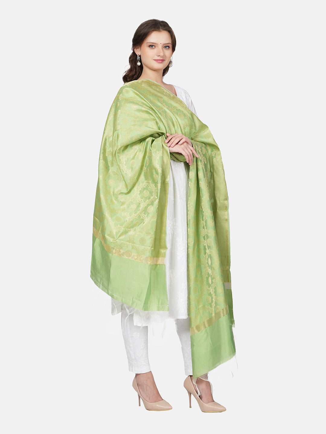 Green Banarasi Silk Dupatta with Elegant Woven Floral Jaal (Size: 2.5x1 m Approx)