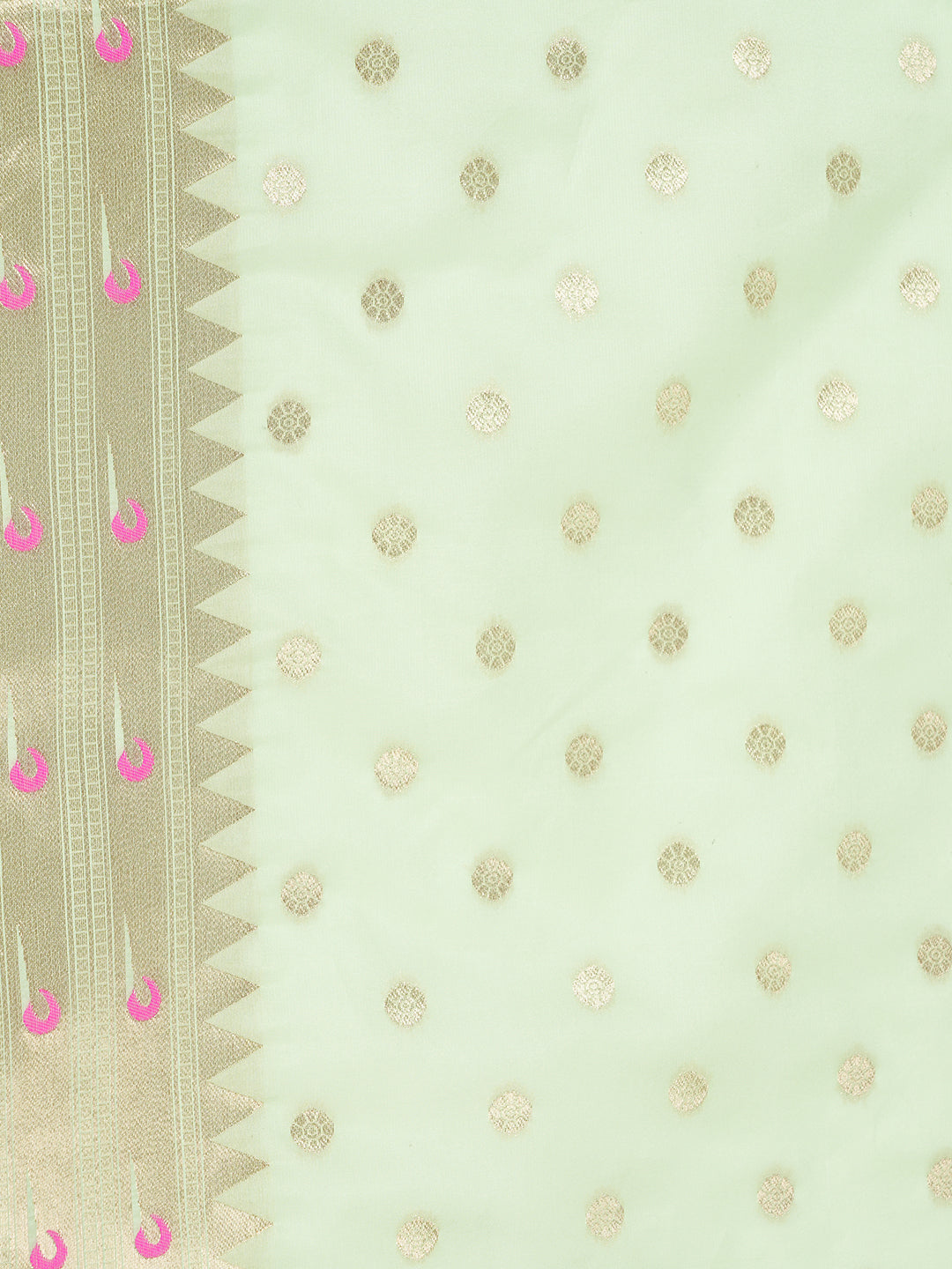 Green Paithani Silk Dupatta with Gold Zari Butti & Traditional Border (Size: 2.5x1 m Approx)