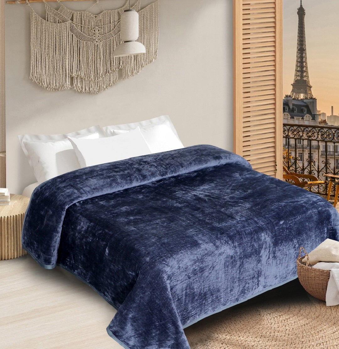 Wrap yourself in luxurious warmth and comfort with this stunning, solid-coloured AC blanket. Featuring a velvety, crush-style texture, this blanket offers both visual richness and an incredibly soft, plush feel against the skin. The blue colour brings a sense of serene sophistication to any bedroom decor, easily complementing both modern and traditional styles.