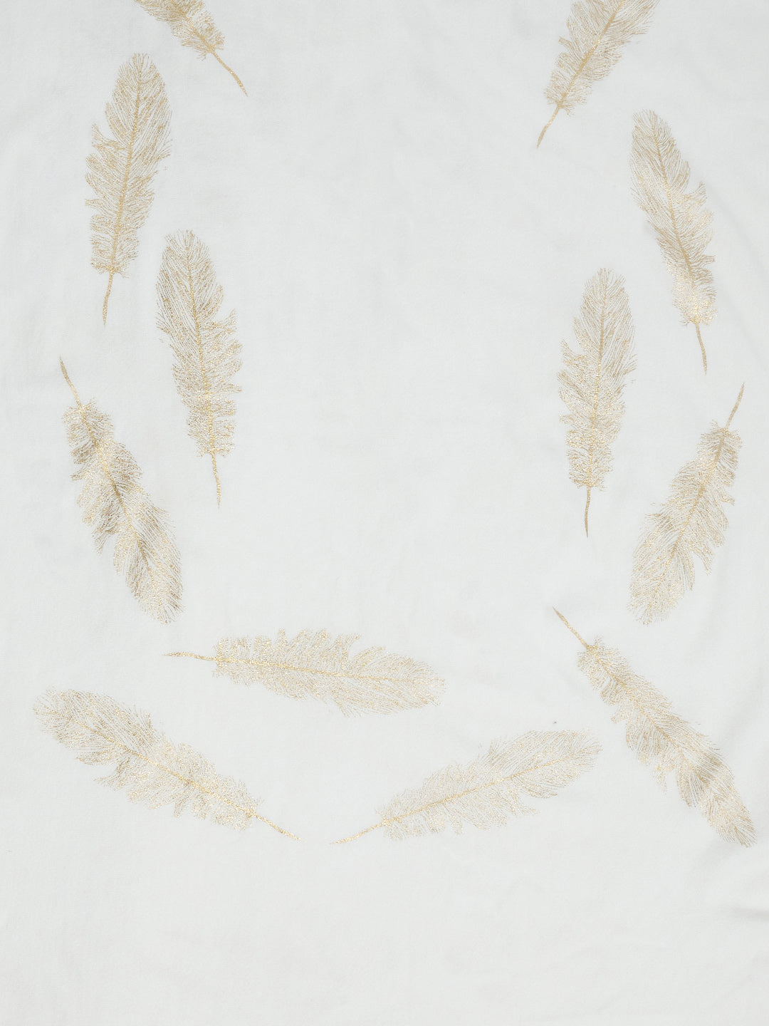 Wool White Feather Motif Women Stole | Elegant Woven Wrap with Metallic Accents (80 × 28 Inches)