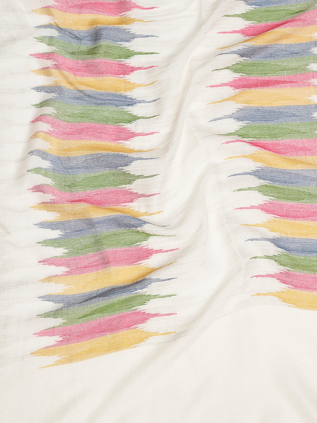 Enhance your winter wardrobe with this elegantly crafted men’s woolen stole, designed to reflect understated sophistication and traditional artistry. Woven from soft wool fabric, it provides comfortable warmth with a lightweight, breathable feel and a refined drape that complements structured as well as relaxed silhouettes. The all-over Ikat-inspired woven pattern adds a subtle heritage character, while the neatly finished woven border lends a clean, polished finish for a timeless look. Measuring 80 × 28 inches, this versatile stole can be styled effortlessly over kurtas, bandhni suits, Nehru jackets, coats, and winter layers. Ideal for winters, festive occasions, formal gatherings, office wear, travel, and evening events, it is a distinguished choice for men who value classic design, craftsmanship, and effortless elegance.