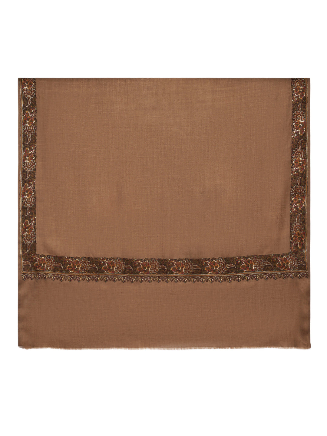 Woolen Women Shawl in Brown with Embroidered Traditional Border (80 x 40 Inches)