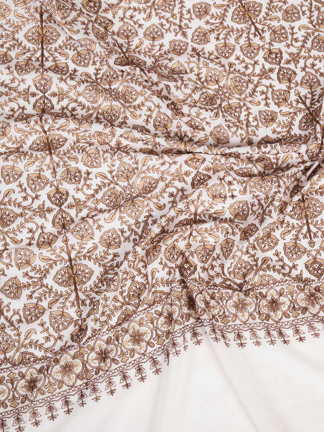 Elevate your winter ethnic and fusion wardrobe with this exquisitely crafted women’s woolen shawl, designed to blend warmth with refined elegance. Made from soft woolen fabric, it offers a smooth texture and a graceful, fluid drape that feels comfortable for all-day wear. The shawl features an all-over traditional motif pattern, enhanced by a richly detailed woven border inspired by classic heritage designs, adding depth and artisanal charm without appearing overpowering. Finished with delicate fringed edges, it reflects fine craftsmanship and a premium look. Measuring 80 x 40 inches, it allows versatile styling—perfect to drape over kurtas, suits, dresses, and winter ensembles. Ideal for winters, festive occasions, cultural gatherings, evening wear, and travel, this shawl is also a thoughtful gifting choice for women who appreciate timeless design, traditional artistry, and understated luxury.