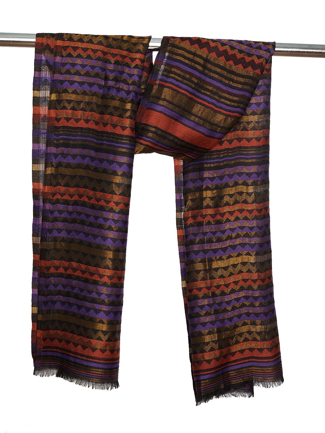 Woolen Zig-Zag Moonlight Zari Women Stole | Traditional Winter Wrap (80 x 28 Inches)