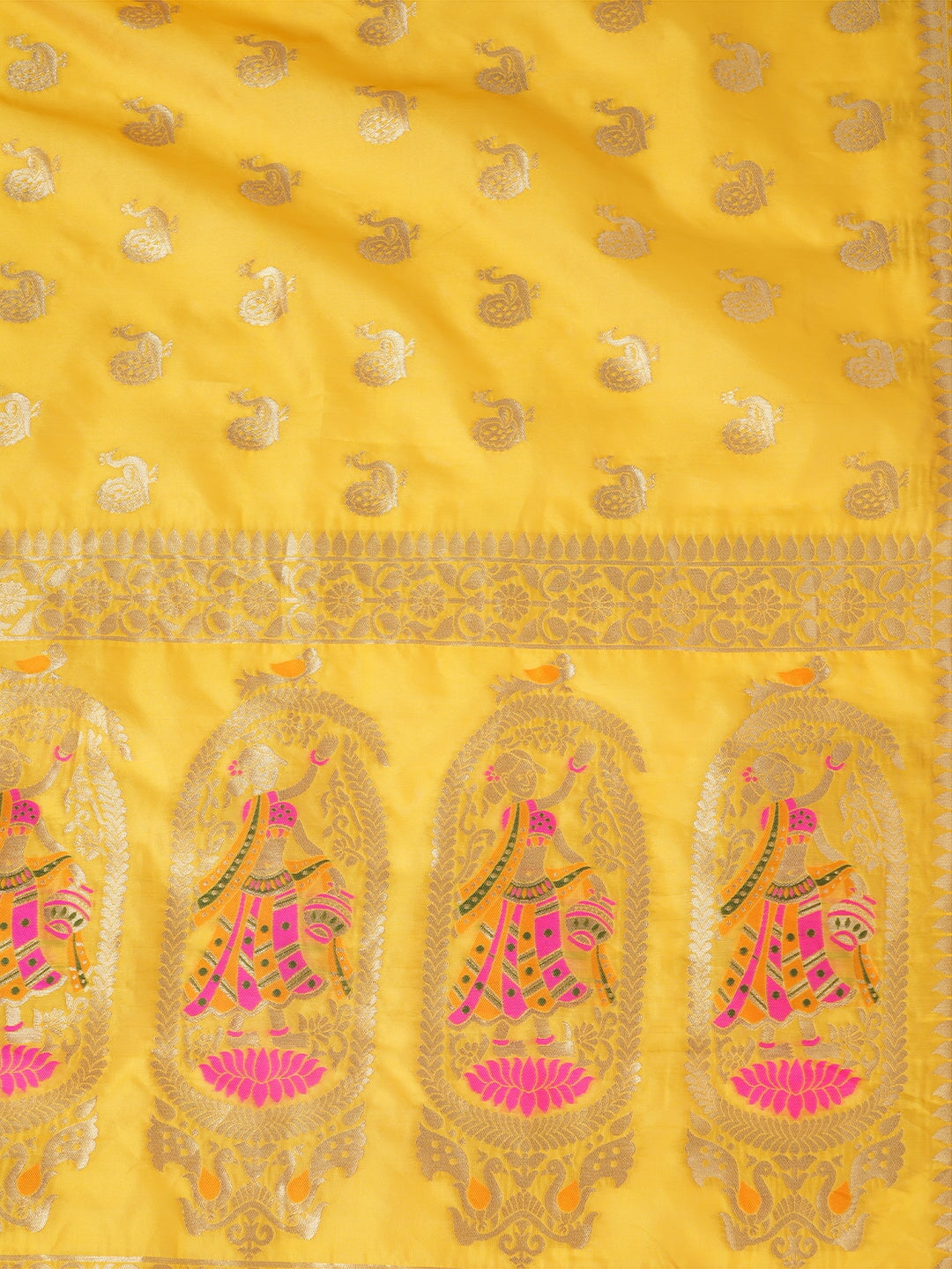 Yellow Paithani Silk Dupatta with Traditional Peacock Motifs (Size: 2.5x1 m Approx)