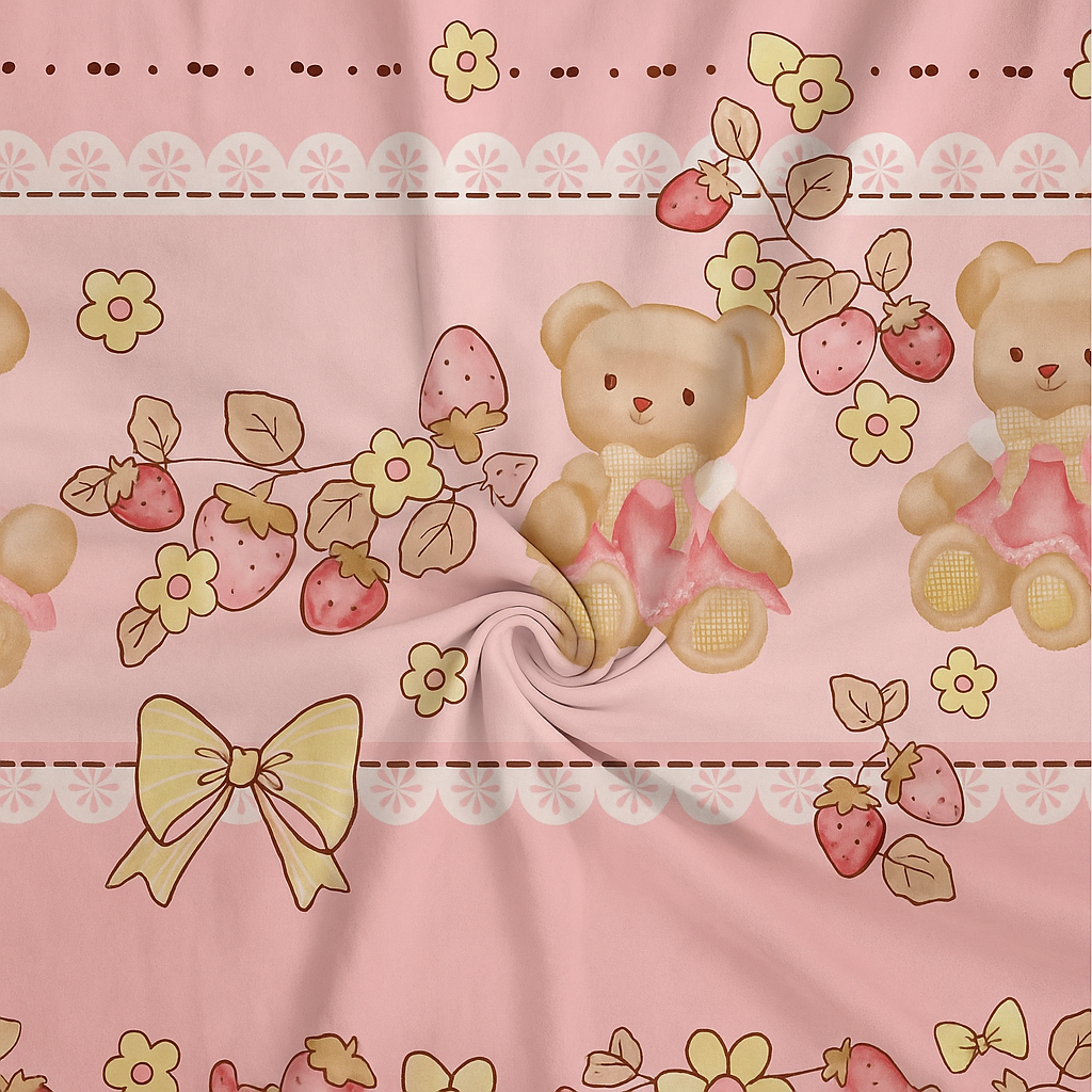 The cotton blend fabric is designed to resist wear and tear, making it suitable for everyday use. It is easy to wash, dries quickly, and remains soft after multiple washes. The colorfast printing ensures that the teddy bear motifs and decorative details stay vibrant, even with regular cleaning.