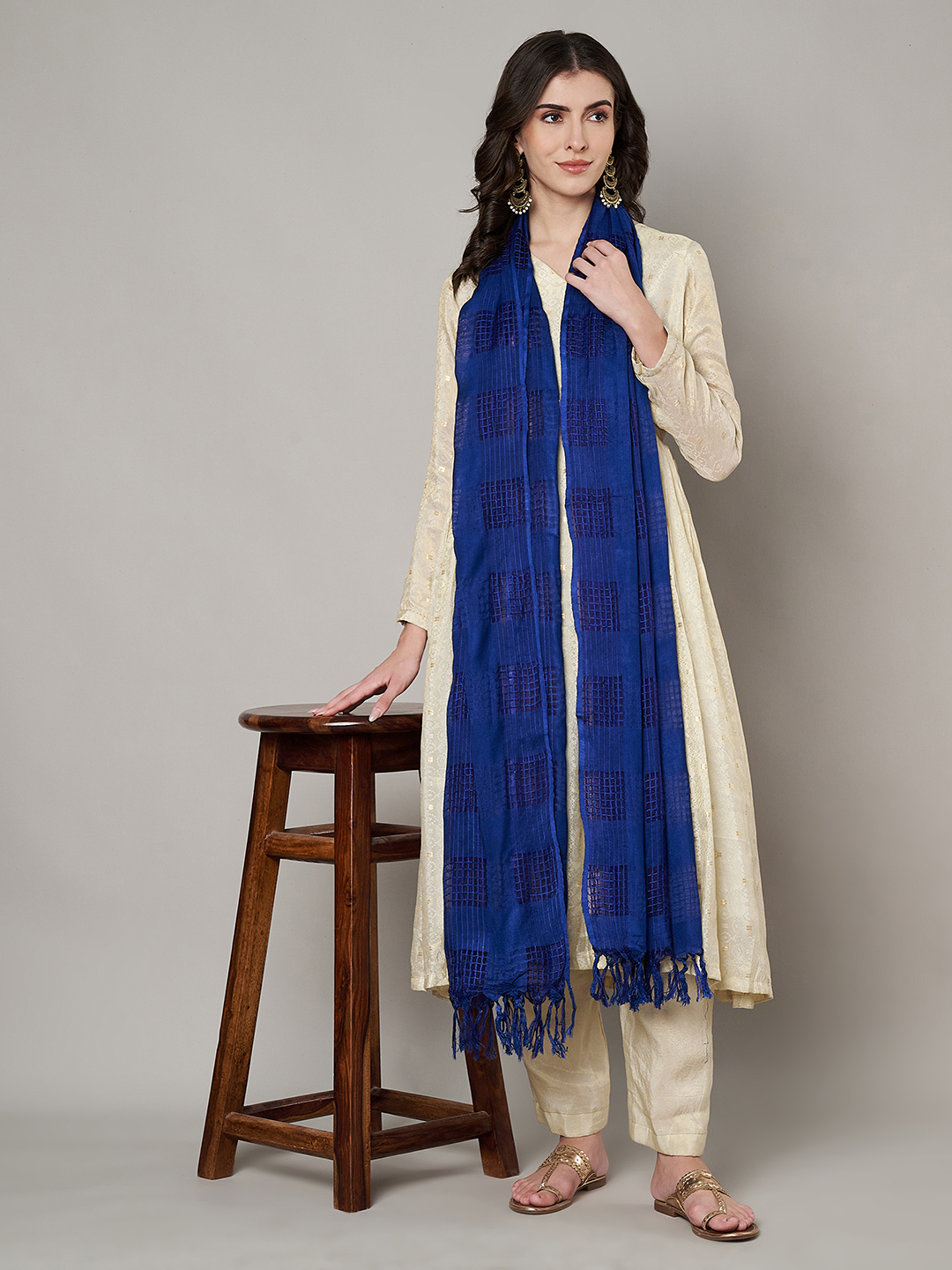 This cotton dupatta is not only stylish but also durable. It is easy to wash, quick to dry, and retains its shape and texture even after repeated use. The woven self-design remains intact, ensuring long-lasting beauty.