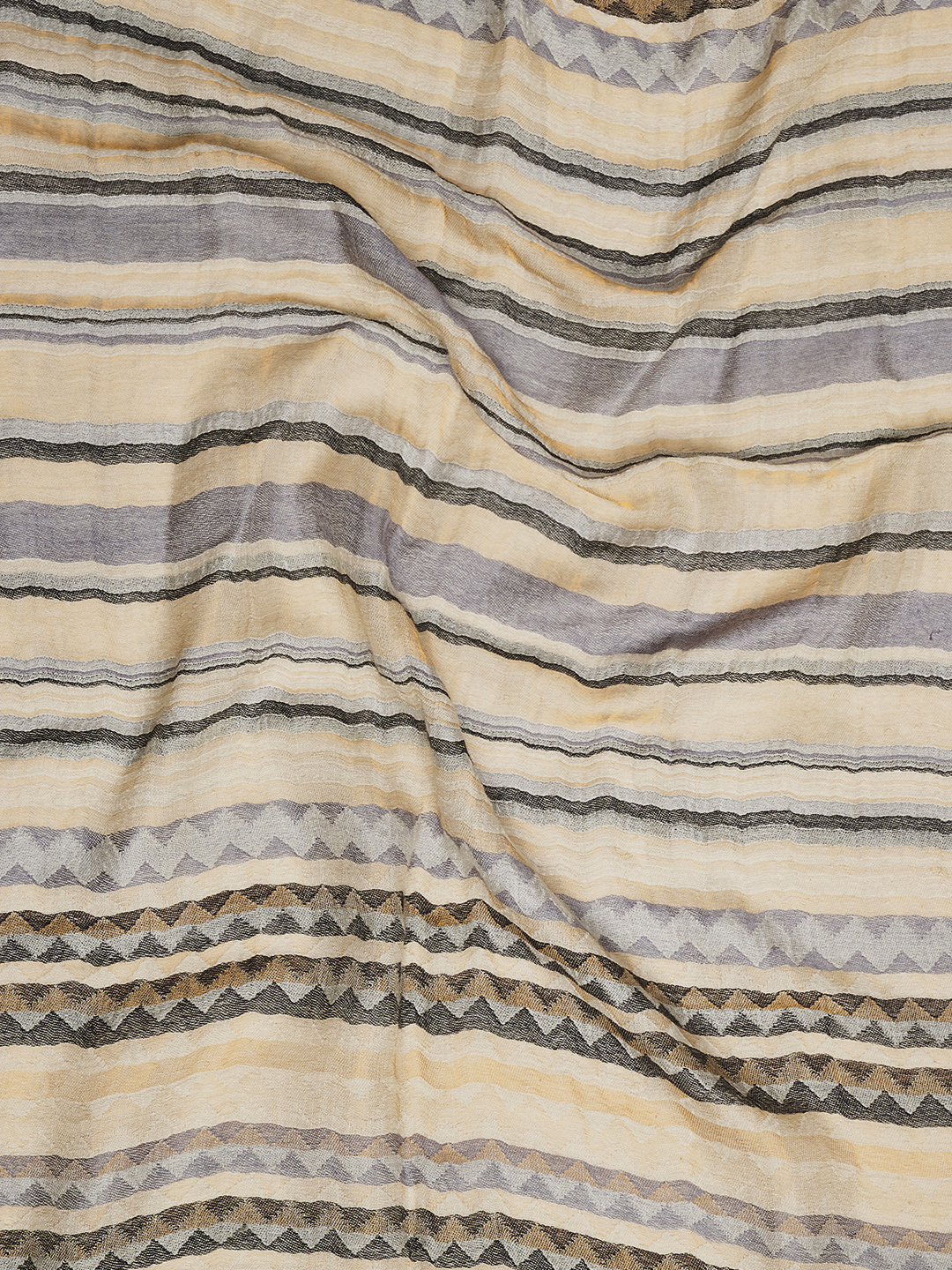 Crafted from fine wool with zari, this stole offers a luxurious blend of softness, warmth, and subtle shimmer. As a result, the Zig-Zag Stole feels comfortable on the skin while adding a festive charm. Furthermore, the breathable fabric makes it suitable for year-round wear, from breezy evenings to special occasions.