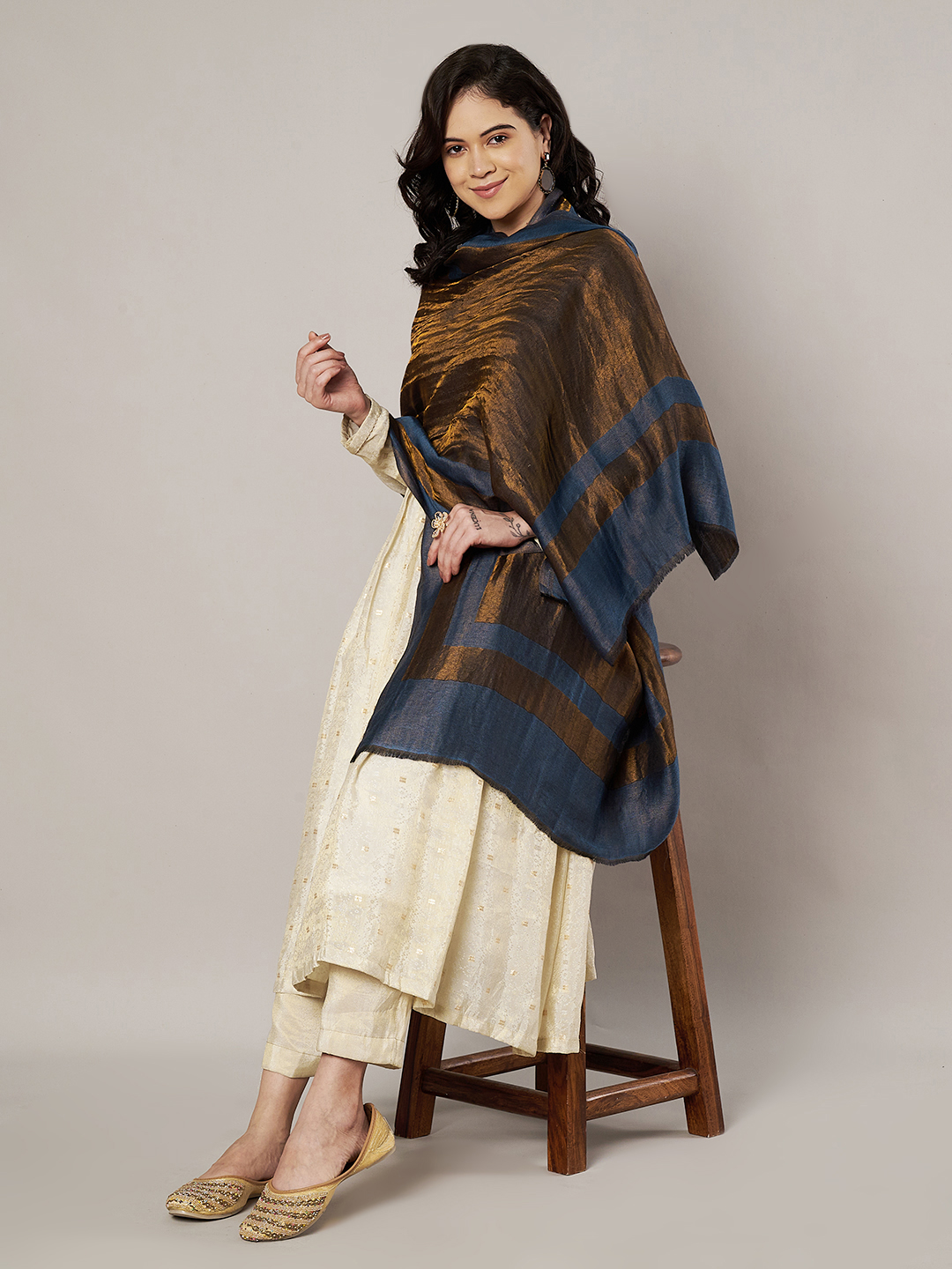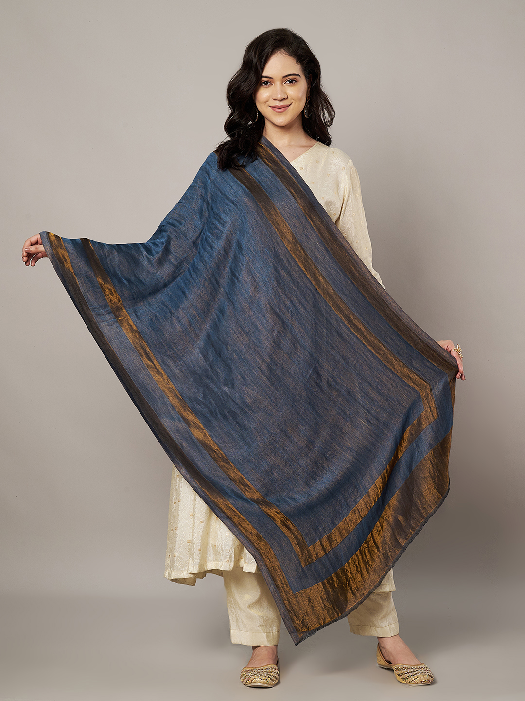 Add a touch of luxury to your wardrobe with the Zari Dual Border Moonlight Stole, crafted from a premium wool blend. Designed with a rich moonlight shade and highlighted with a shimmering zari dual border, this stole is soft, lightweight, and versatile. Perfect as a wrap, dupatta, or scarf, it pairs beautifully with both ethnic and western outfits.