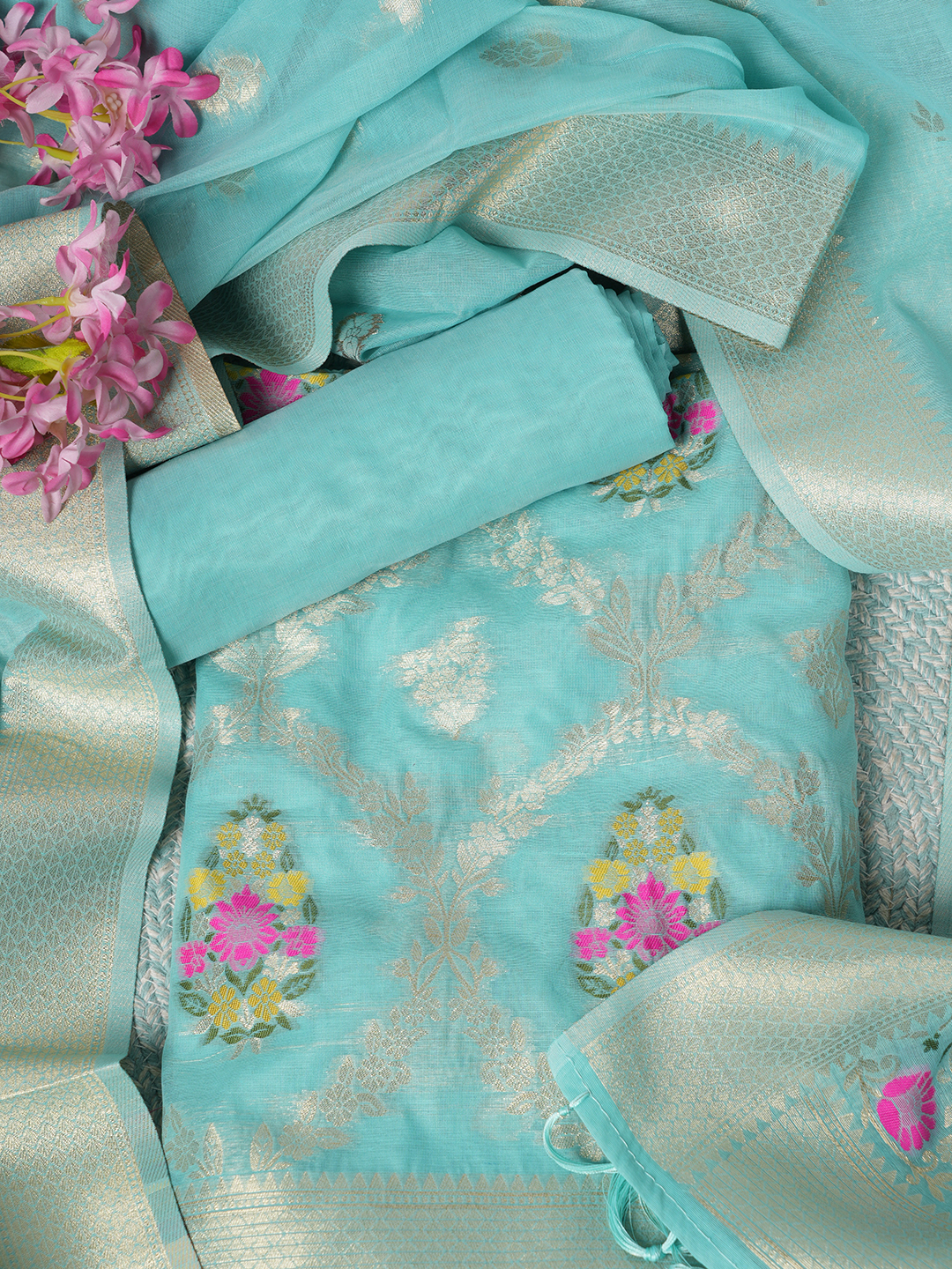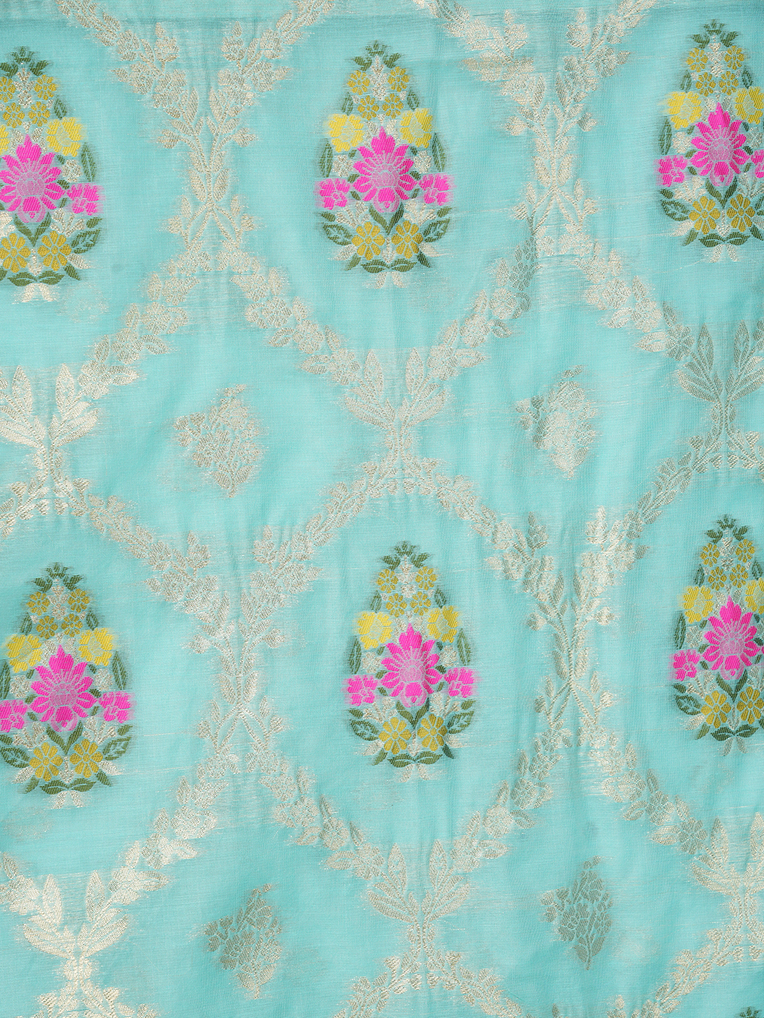 Woven floral motifs with zari detailing