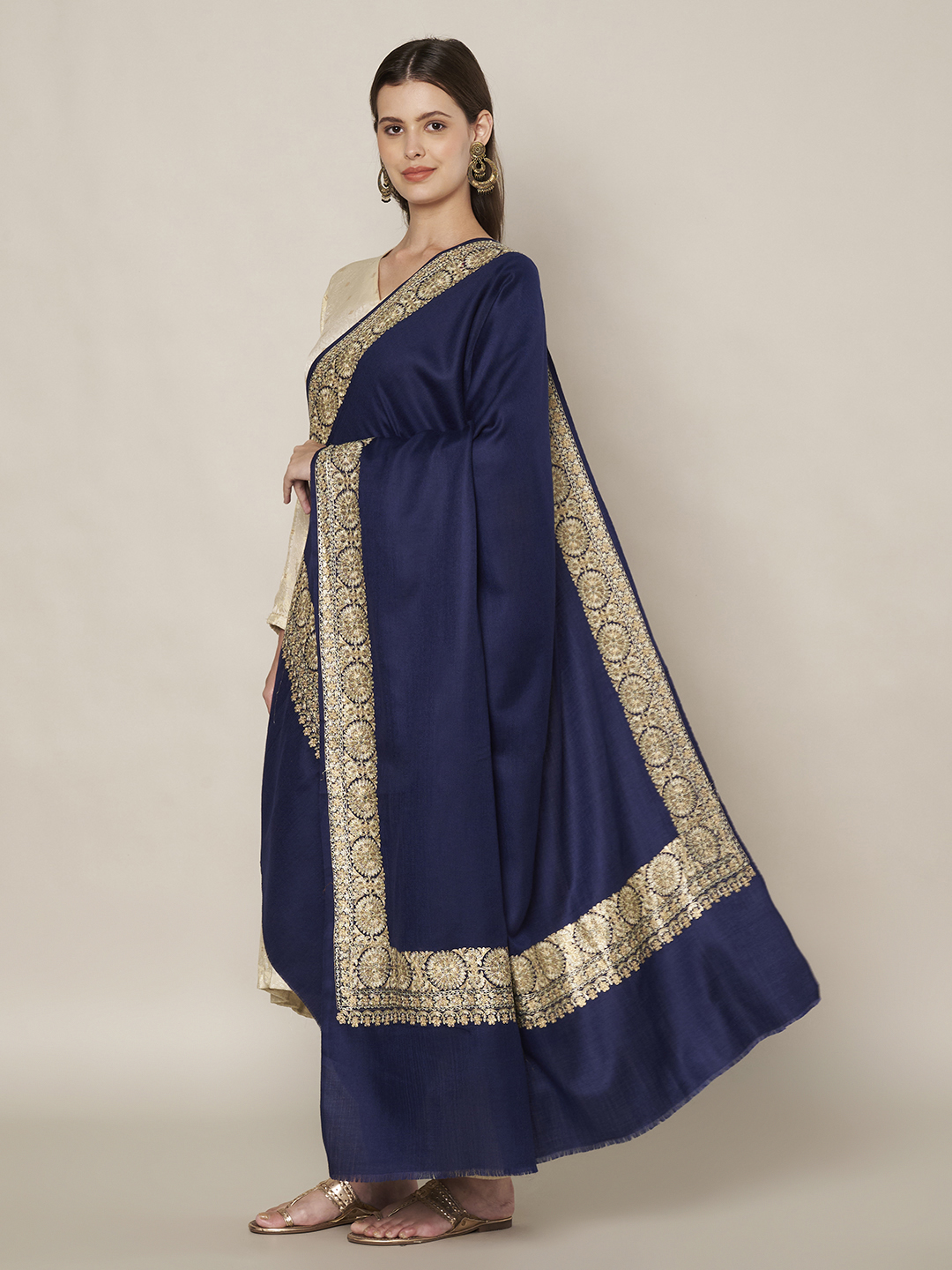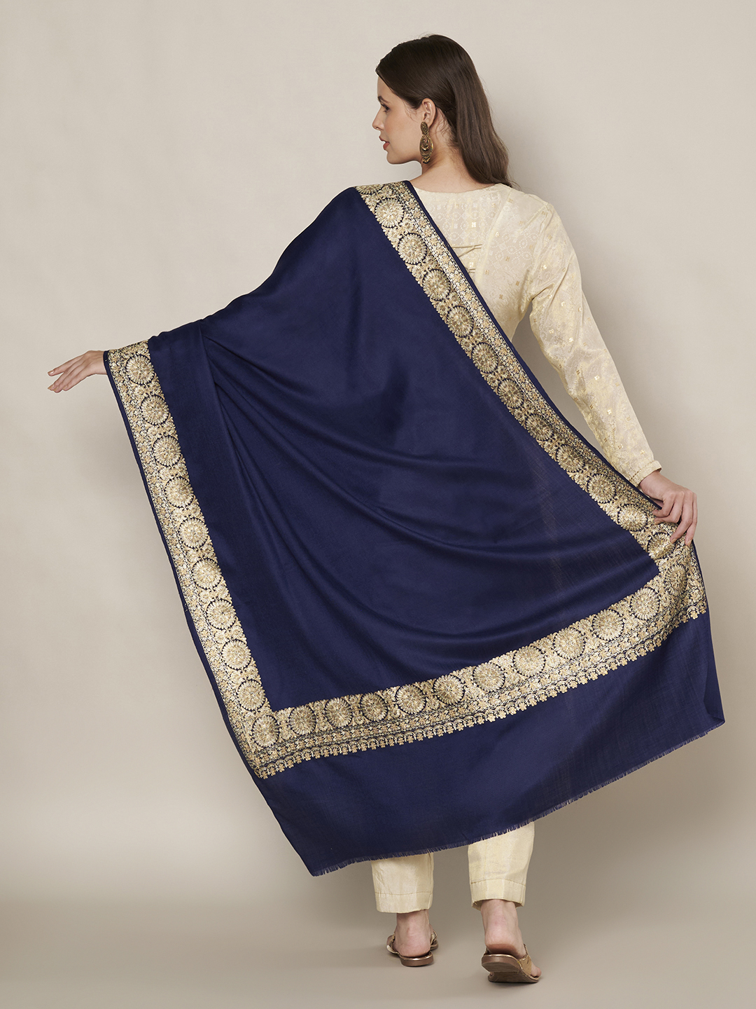 At 40×80 inches, this shawl provides ample length and width, making it versatile for multiple draping styles. Drape it gracefully over your shoulders, wrap it as a full winter cover, or pair it with Indo-western attire for a sophisticated statement.