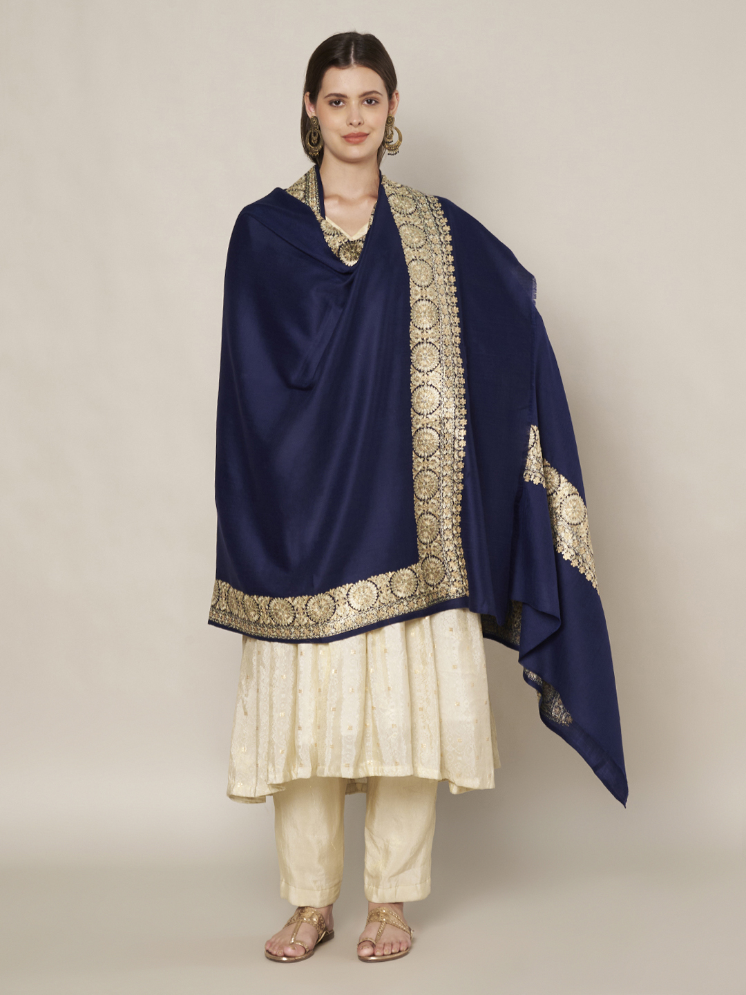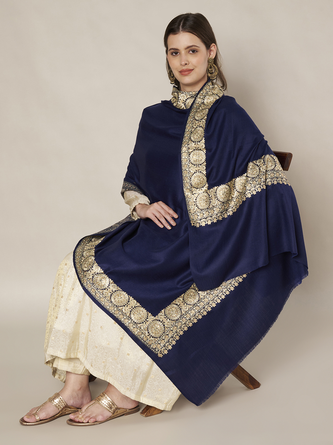This designer wool shawl pairs beautifully with both traditional and modern outfits. Wear it with sarees, lehengas, and salwar suits for ethnic events, or layer it over dresses, coats, and formal ensembles for a graceful Indo-western look.