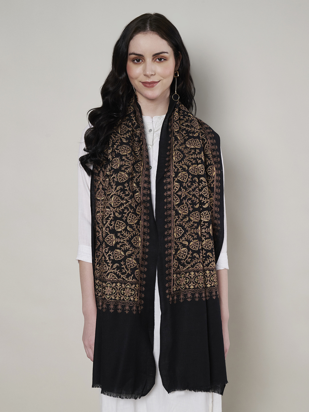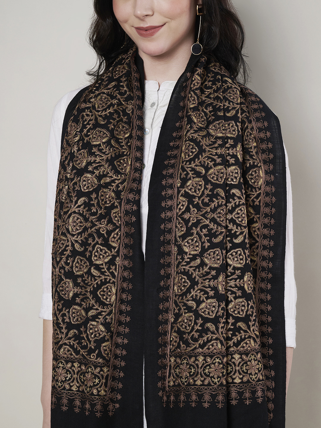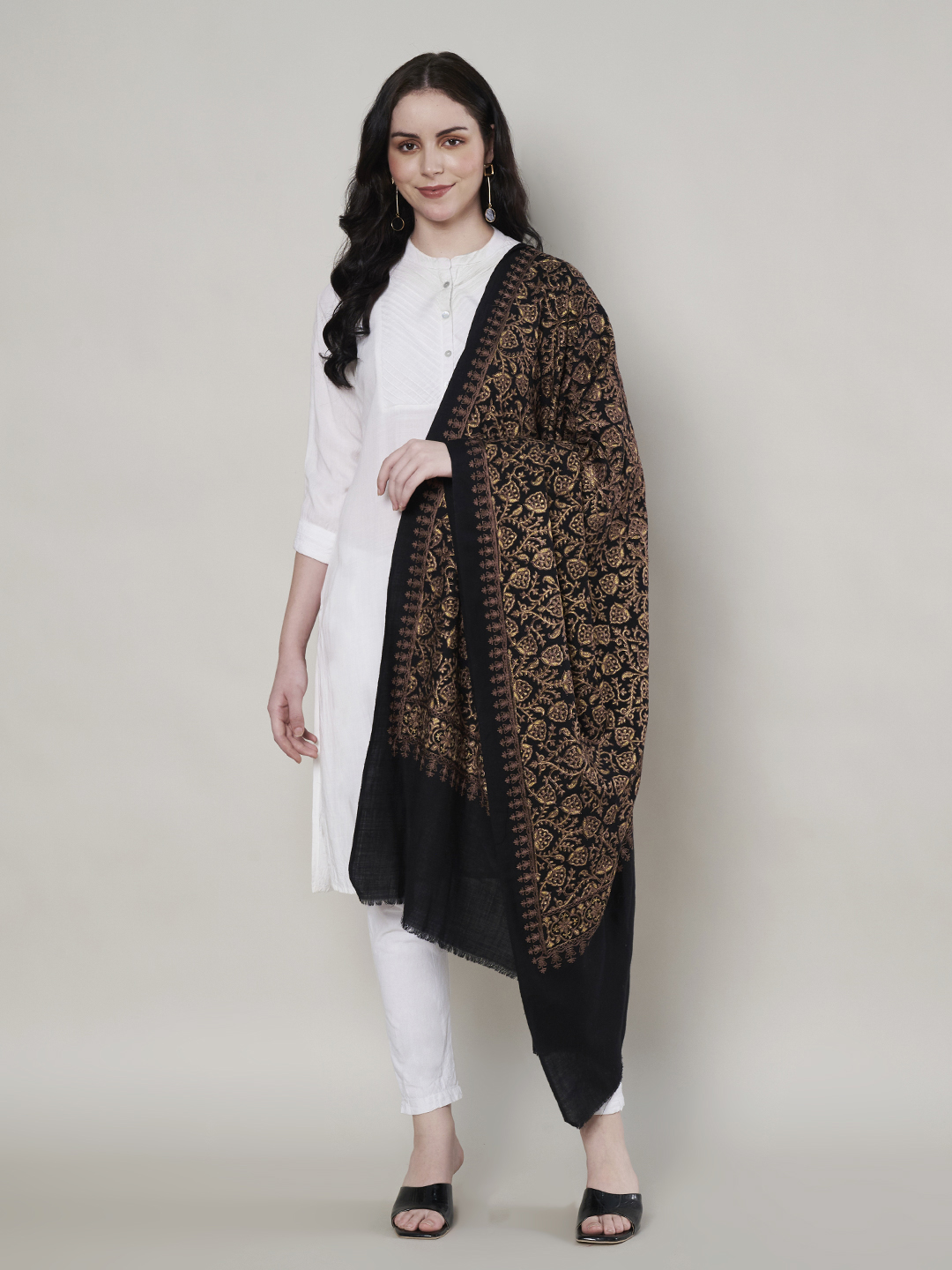 Blending traditional embroidery with fine wool, this stole is a wardrobe essential. Additionally, it elevates any outfit instantly, making it a go-to piece for women who value elegance and comfort.
