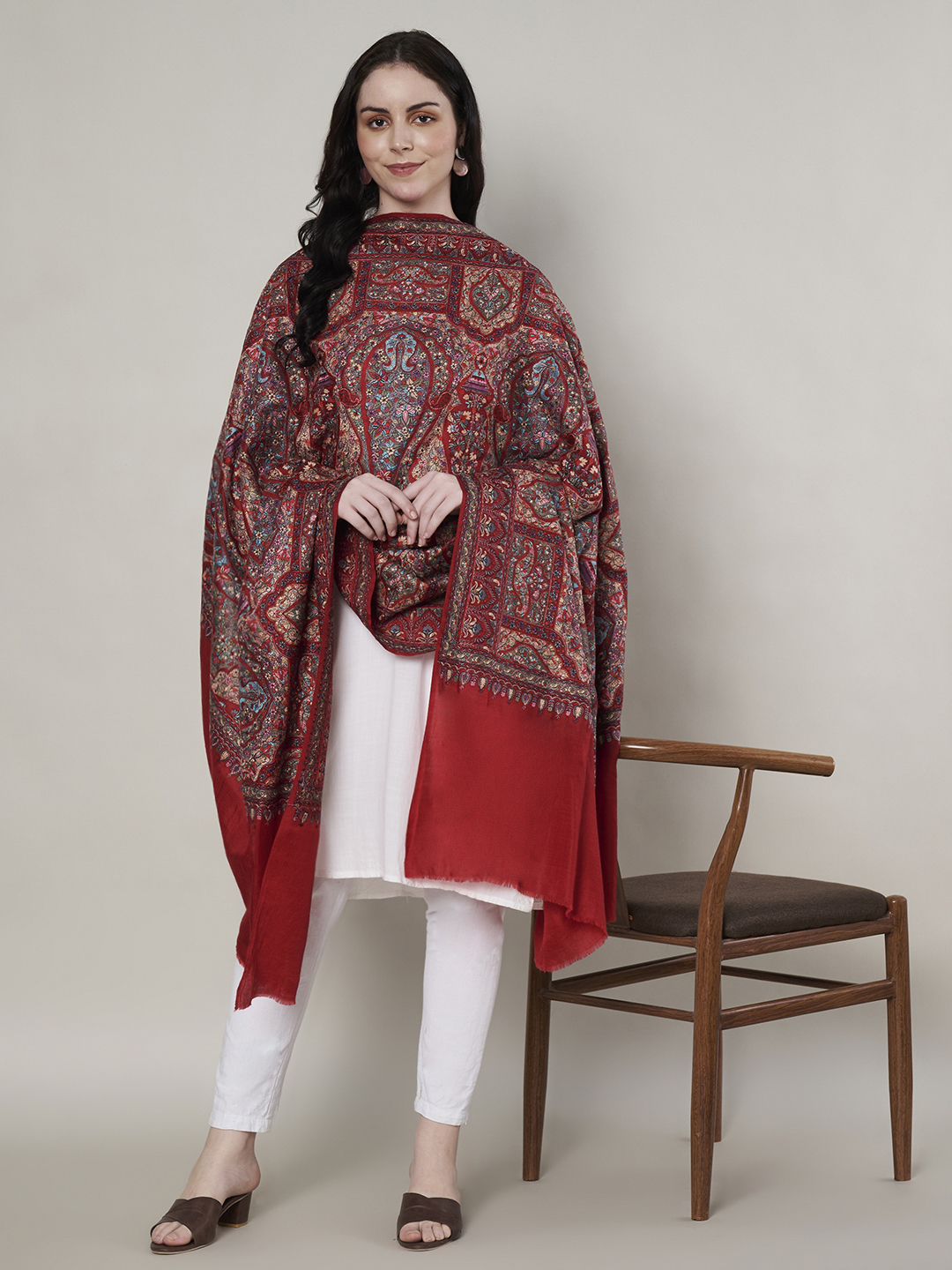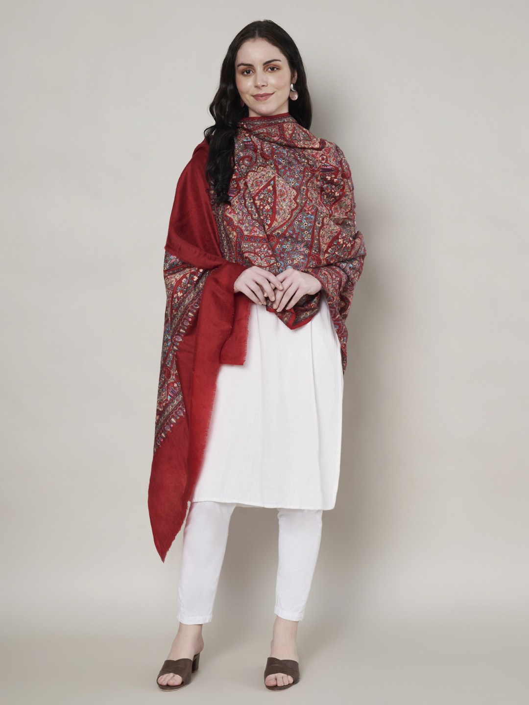 The Muffly Ethnic Wool Shawl is crafted in premium fine wool with intricate ethnic motifs and a detailed border. Measuring 40×80 inches, it offers timeless warmth, elegance, and versatility for festive occasions, weddings, or everyday style.
