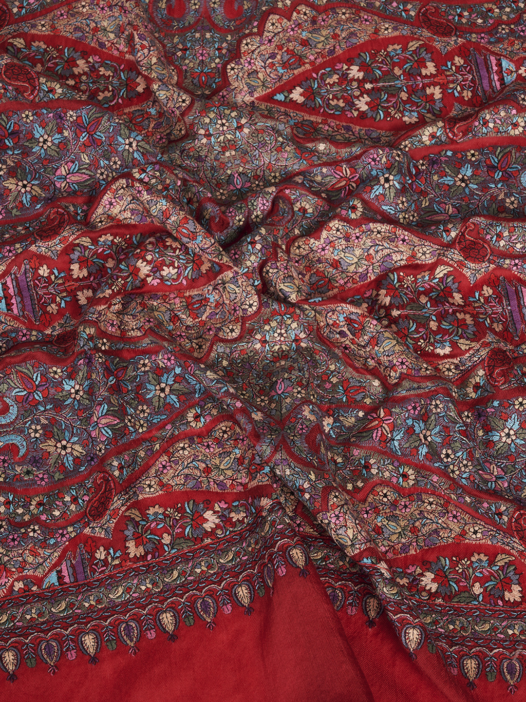 Adding to its richness, the shawl features a detailed border that complements the ethnic motifs beautifully. Additionally, the border elevates the overall design, giving it a sophisticated and versatile look.