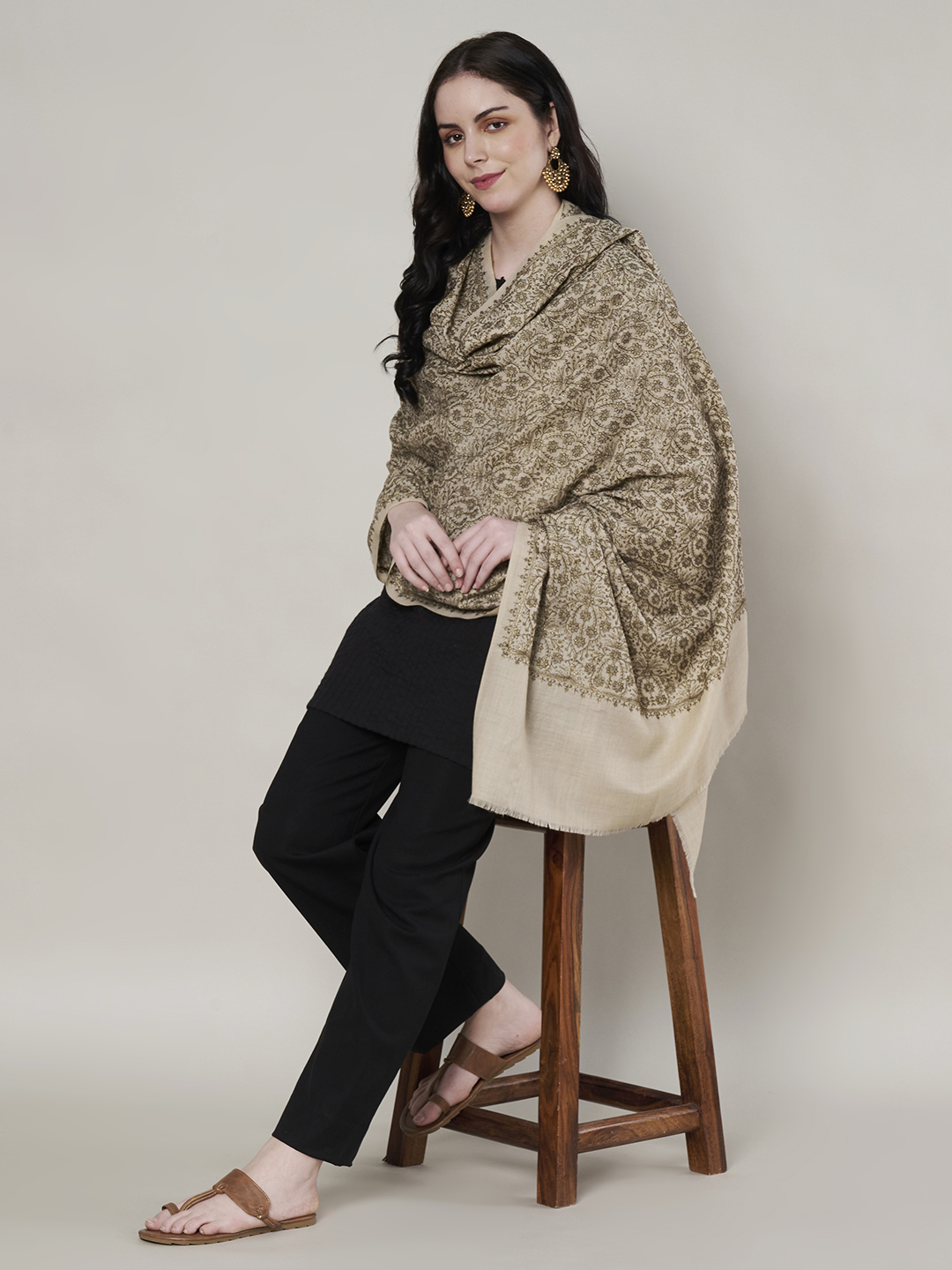 Whether paired with sarees, suits, or western wear, the Golden Zari Shawl elevates any outfit. Additionally, its mix of heritage craft and stylish design makes it suitable for women of all ages.