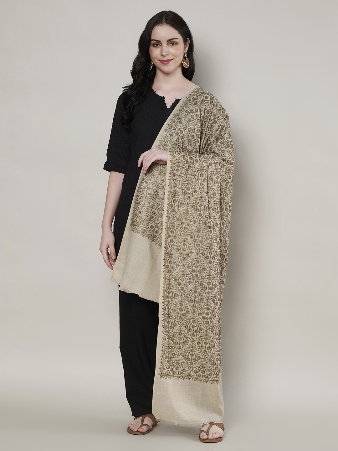 Made from fine wool, this shawl is lightweight yet warm, ensuring comfort while maintaining durability. As a result, it drapes beautifully, making it easy to style as a wrap, dupatta, or evening layer without compromising on elegance.
