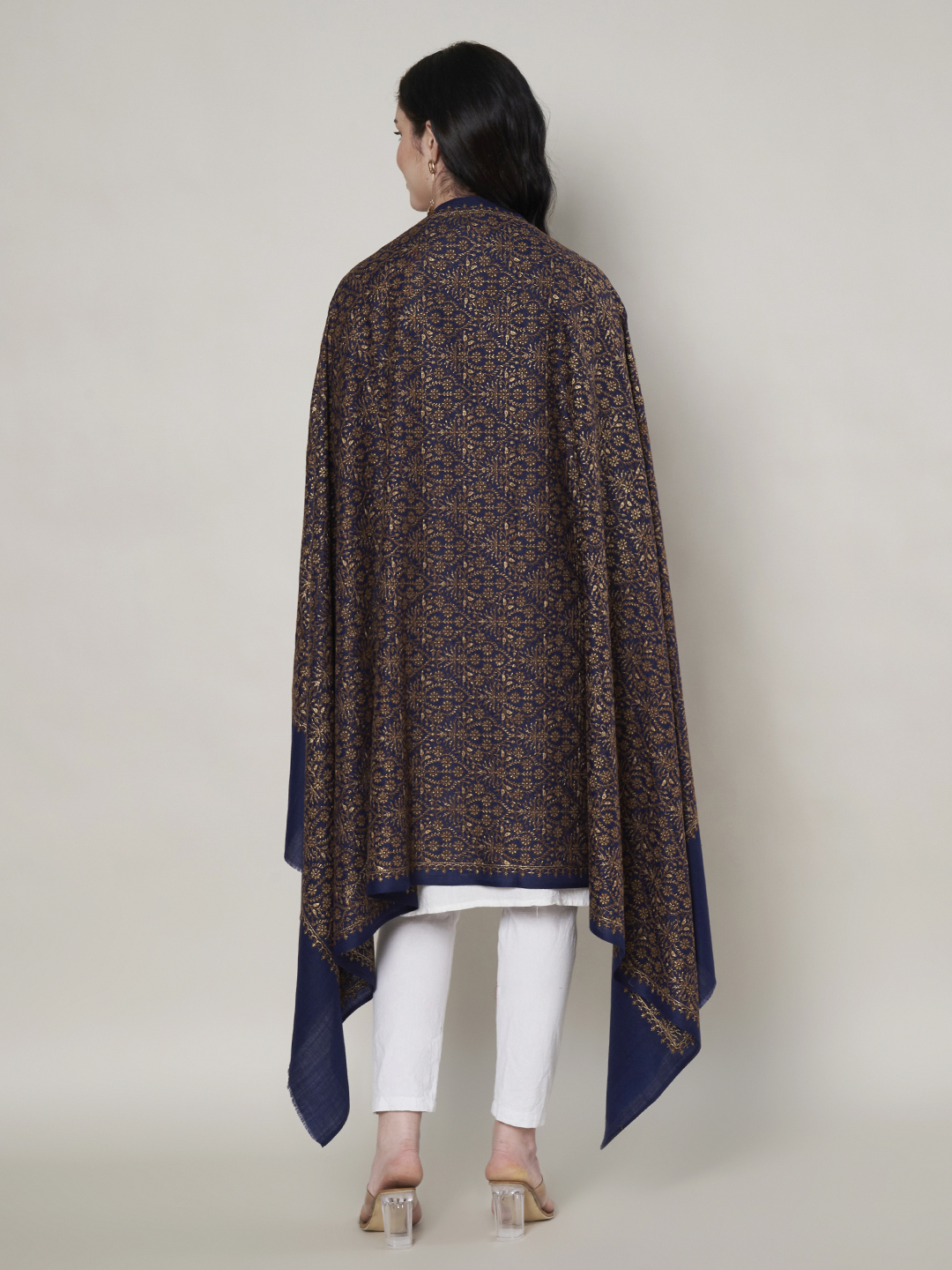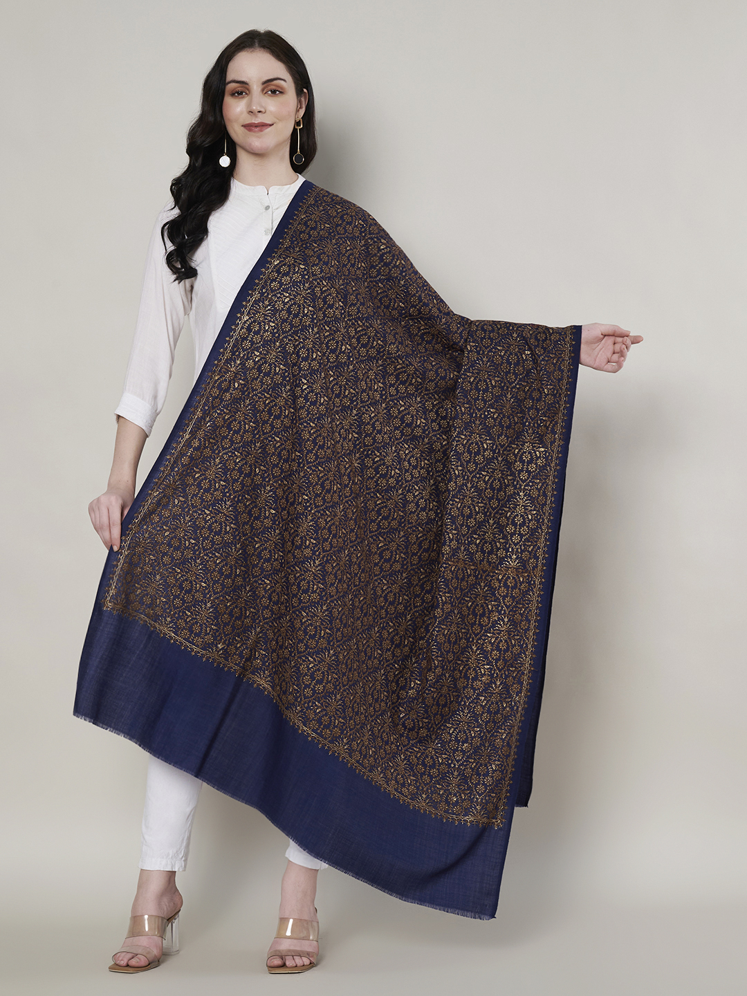 Muffly Golden Zari Shawl in Fine Wool – 40×80 Inches