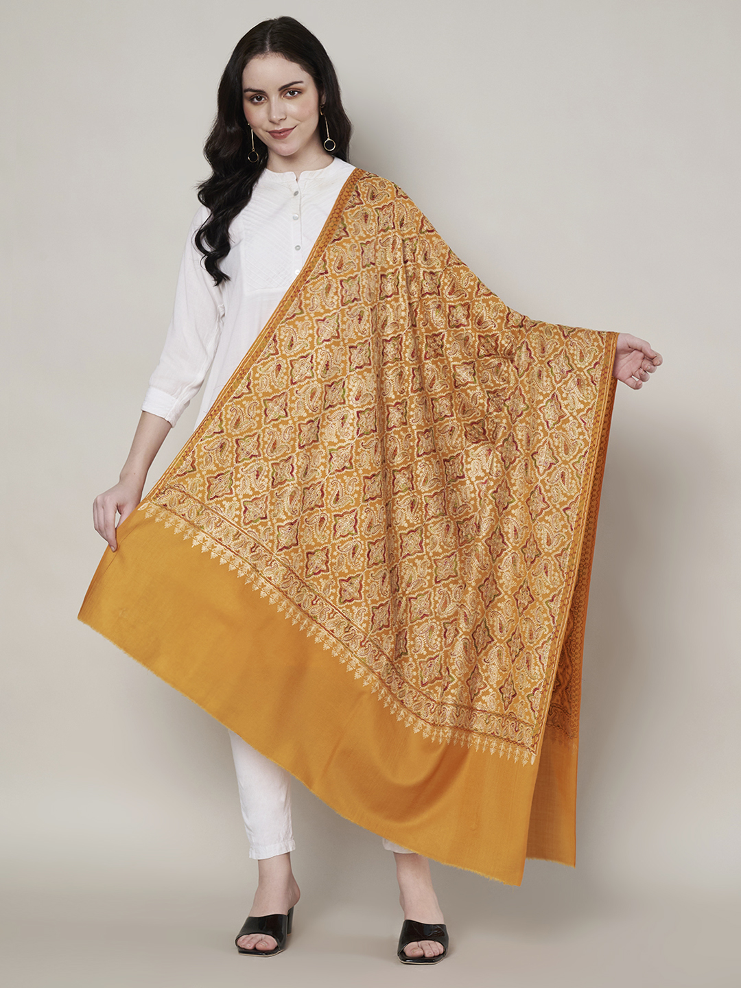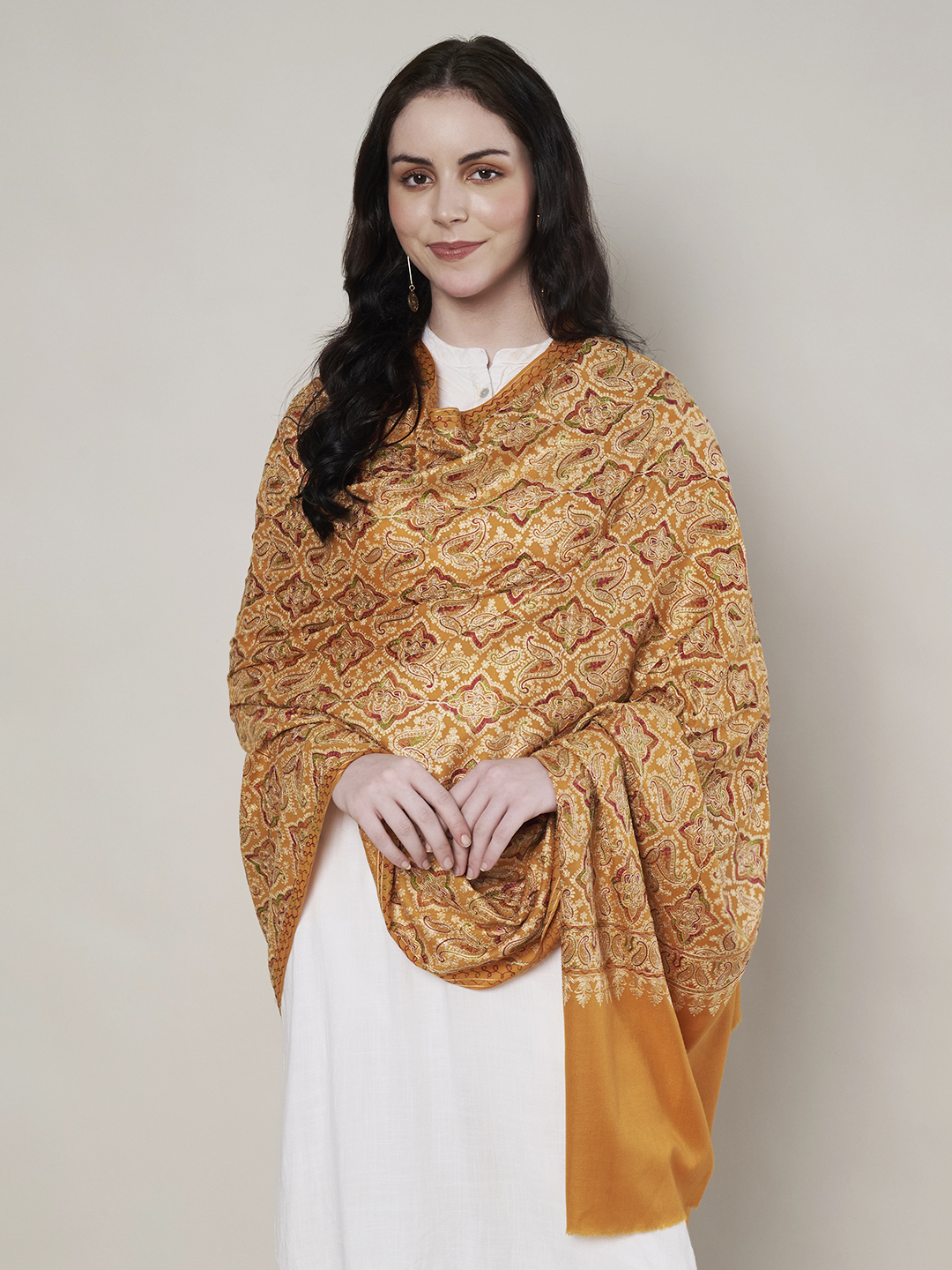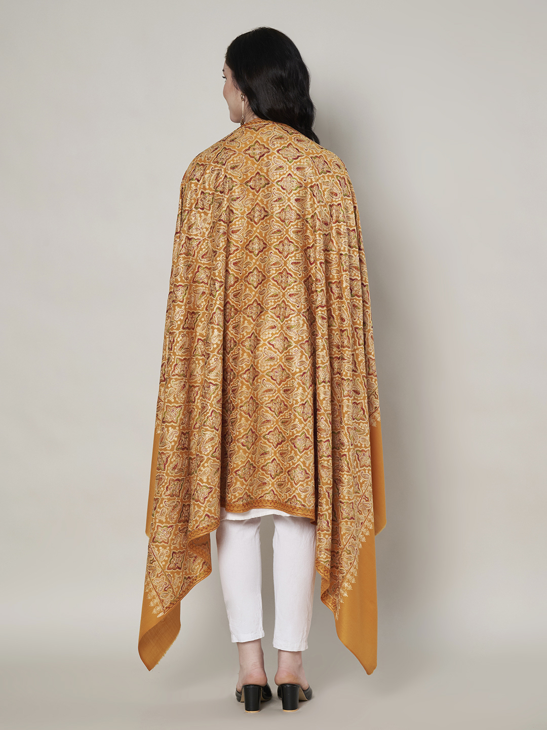 Measuring 40×80 inches, this Kashmiri jaal shawl offers generous coverage and endless styling possibilities. Whether draped gracefully over ethnic wear for weddings and festivals or styled with contemporary outfits for a sophisticated winter look, it adds a touch of regal charm to every ensemble. The woolen texture ensures warmth while remaining lightweight and breathable, making it perfect for seasonal layering.