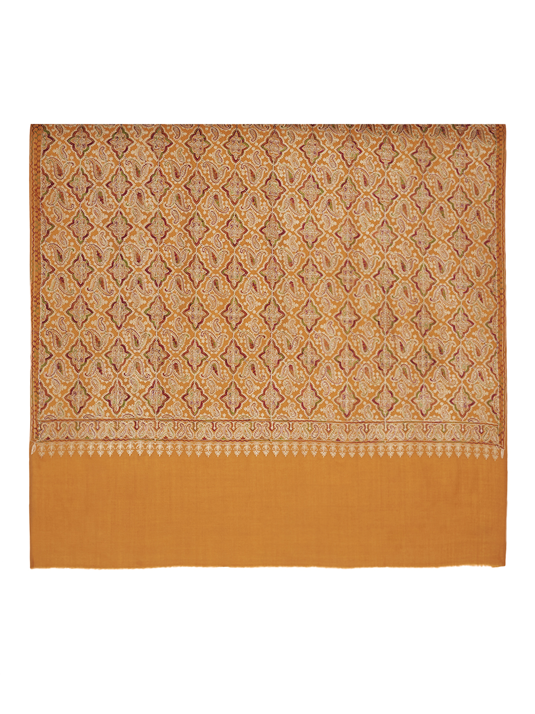 The Muffly Kashmiri Jaal Shawl is a celebration of timeless artistry and traditional elegance. Woven from high-quality wool, this shawl showcases the intricate jaal weaving technique, where fine floral and vine-like motifs flow seamlessly across the entire fabric. This detailed craftsmanship reflects the cultural richness of Kashmir and makes the shawl an heirloom-worthy piece.